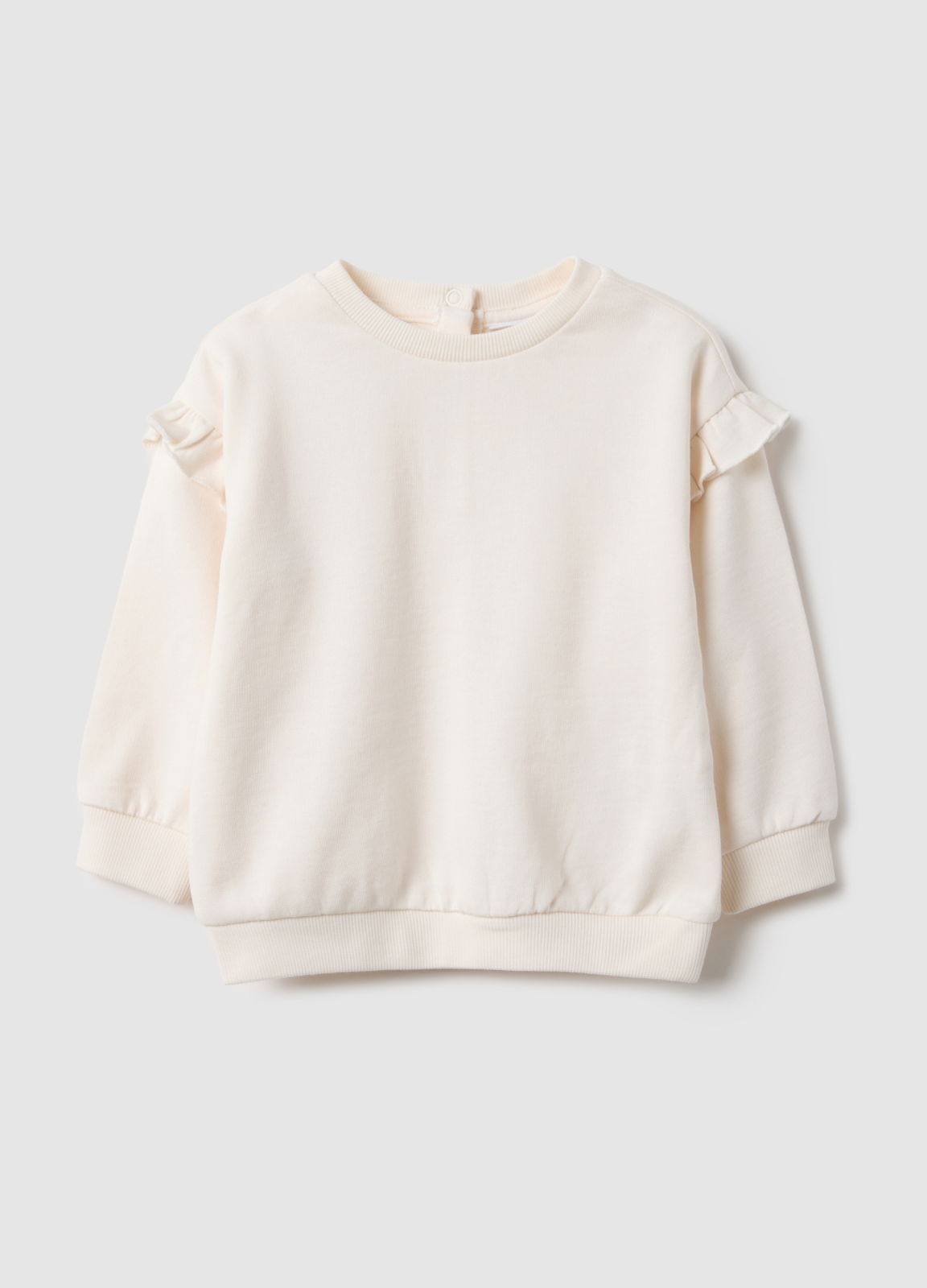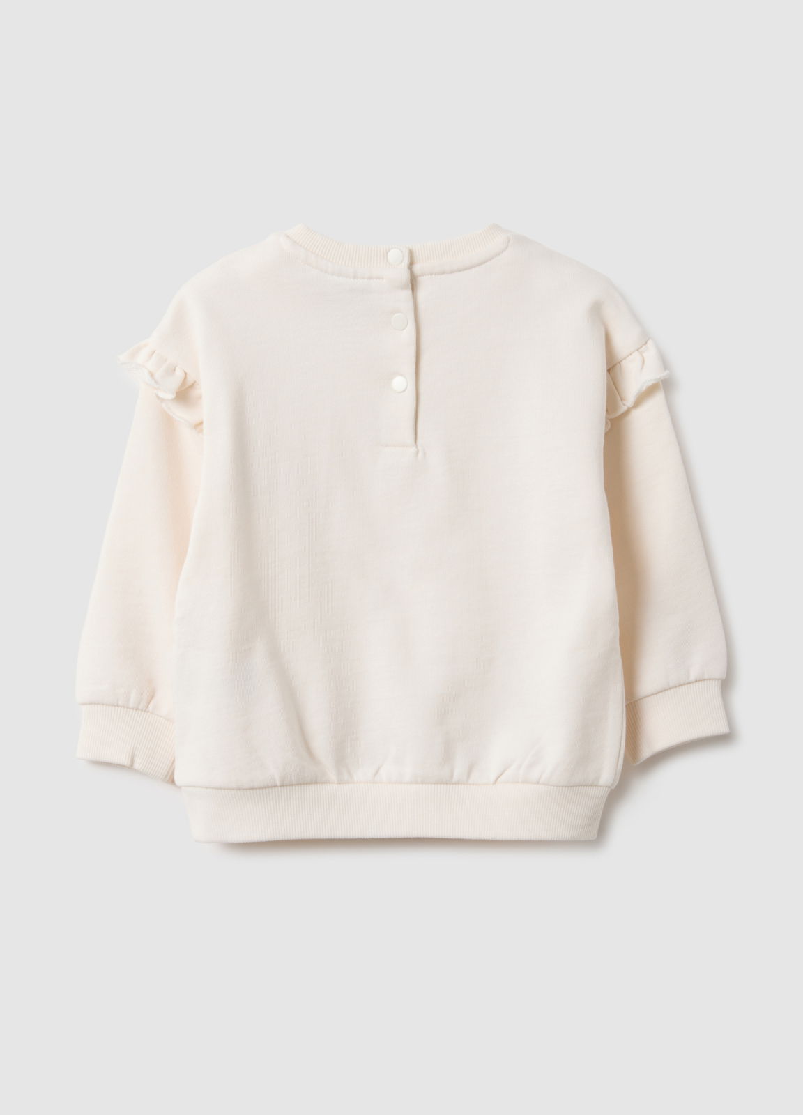Caracteristici: Hanorac alb pentru fete 9–26 luni, linia Fagottino, din bumbac organic French Terry, confortabil. Detalii cu volănașe pe mâneci lungi, guler rotund, închidere cu nasturi în spate pentru practicitate și funcționalitate.
