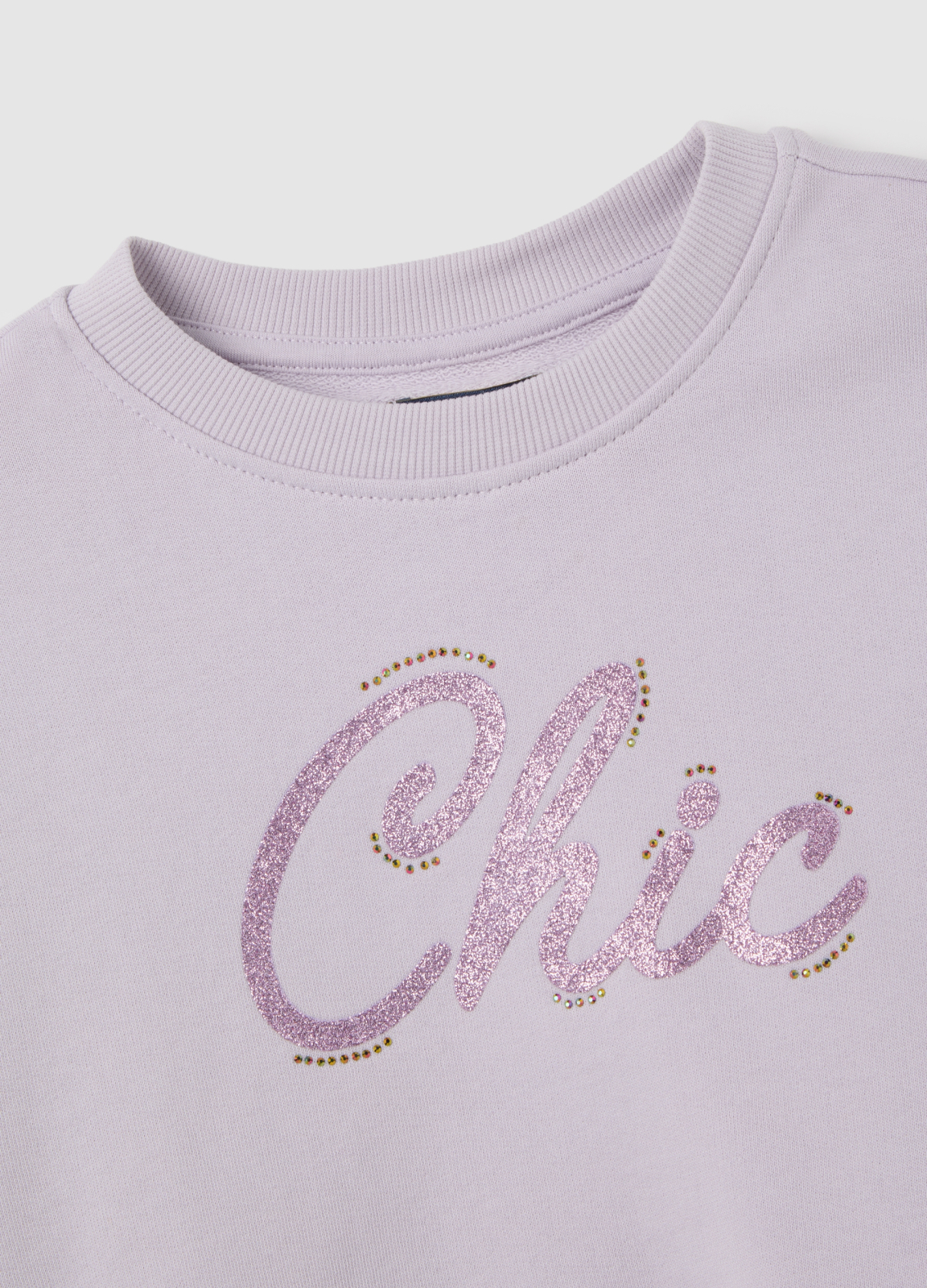 Tip Produs: Pulover violet din bumbac 100% pentru fete, croială lejeră, cu text