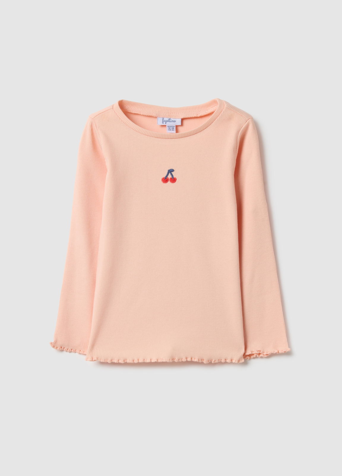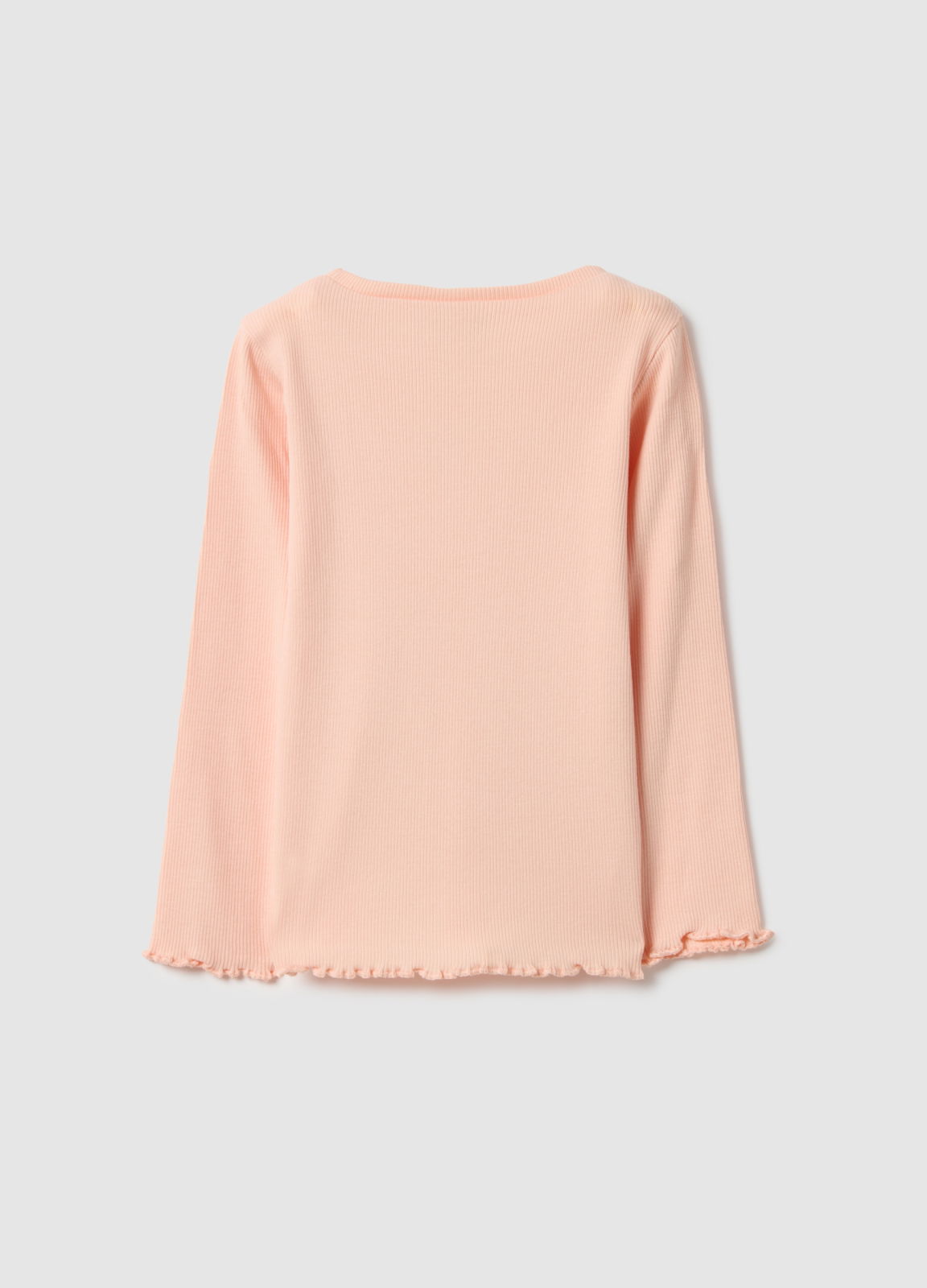 Tip Produs: Tricou roz cu mânecă lungă din amestec de bumbac pentru fete, croială normală