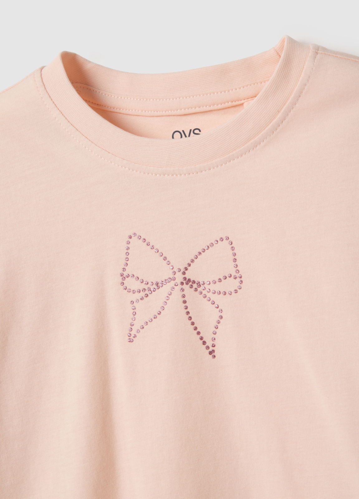 Tip Produs: Tricou roz din bumbac 100% pentru fete, croială regular, cu fundă