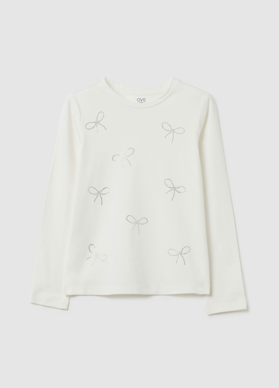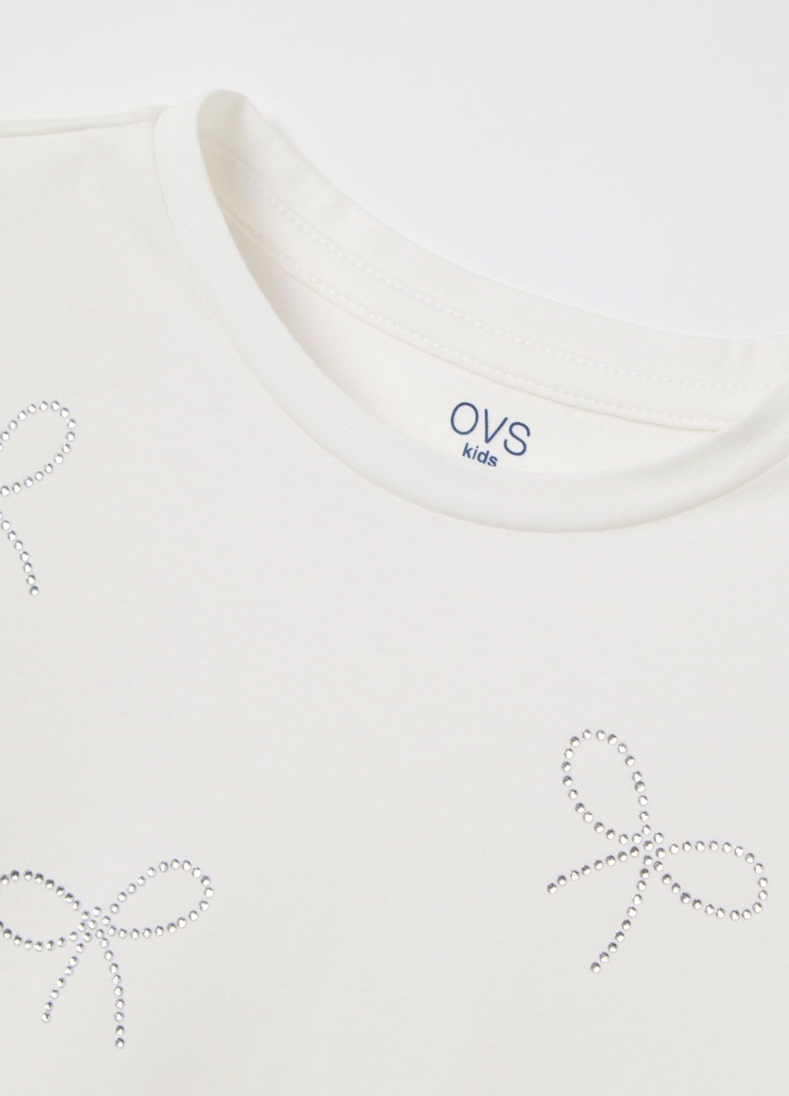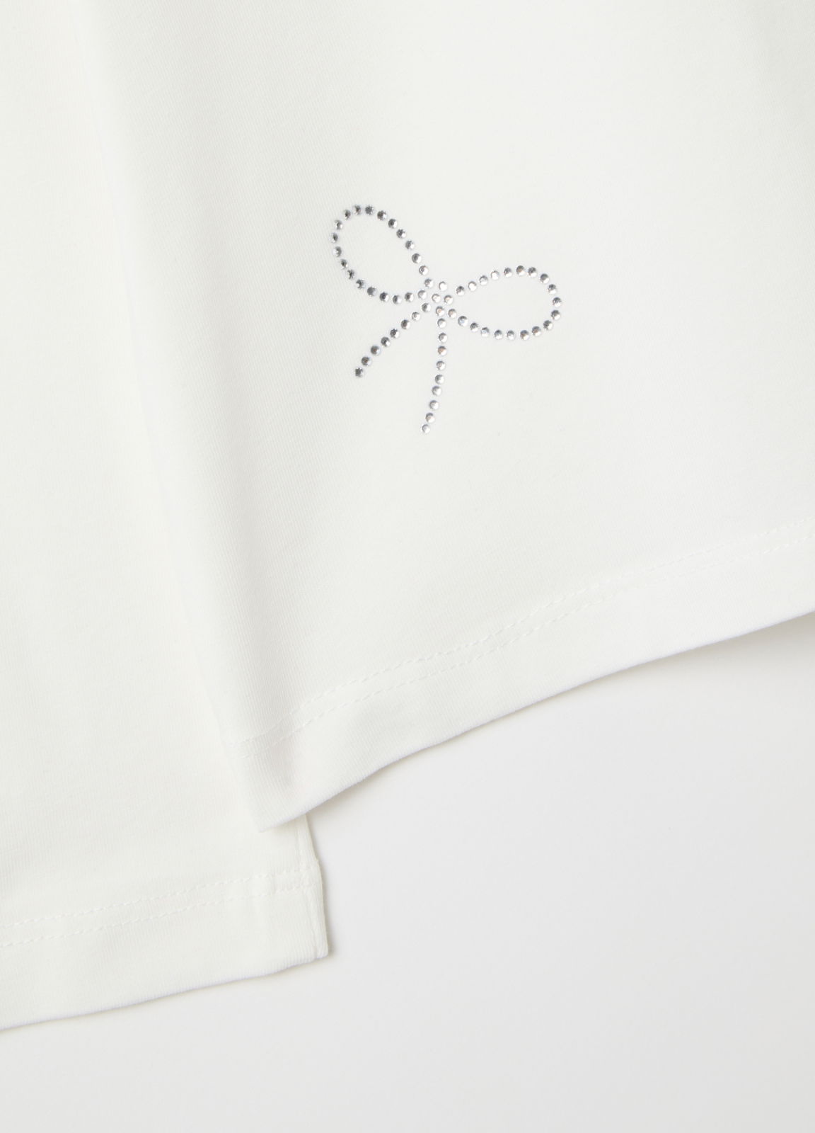 Tip Produs: Bluză albă pentru fete, din bumbac, croială regular fit, cu fundițe din strasuri
