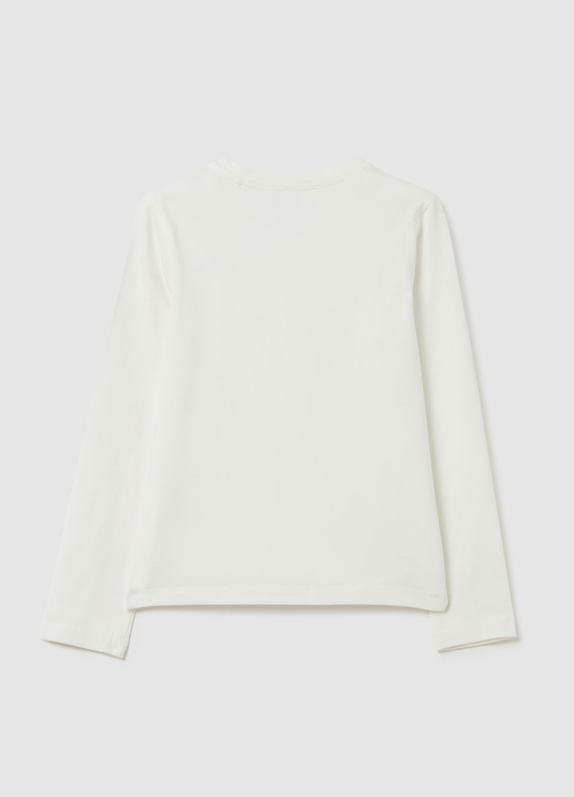 Caracteristici: Topul alb din linia OVS Kids este o piesă versatilă și rafinată, ideală pentru fete cu vârste între 3 și 10 ani. Confecționat din bumbac elastic, prezintă fundițe decorate cu strasuri, mâneci lungi și un guler rotund, potrivit pentru orice ocazie. Croiala regular asigură confort și funcționalitate, perfect pentru ținutele de zi cu zi.