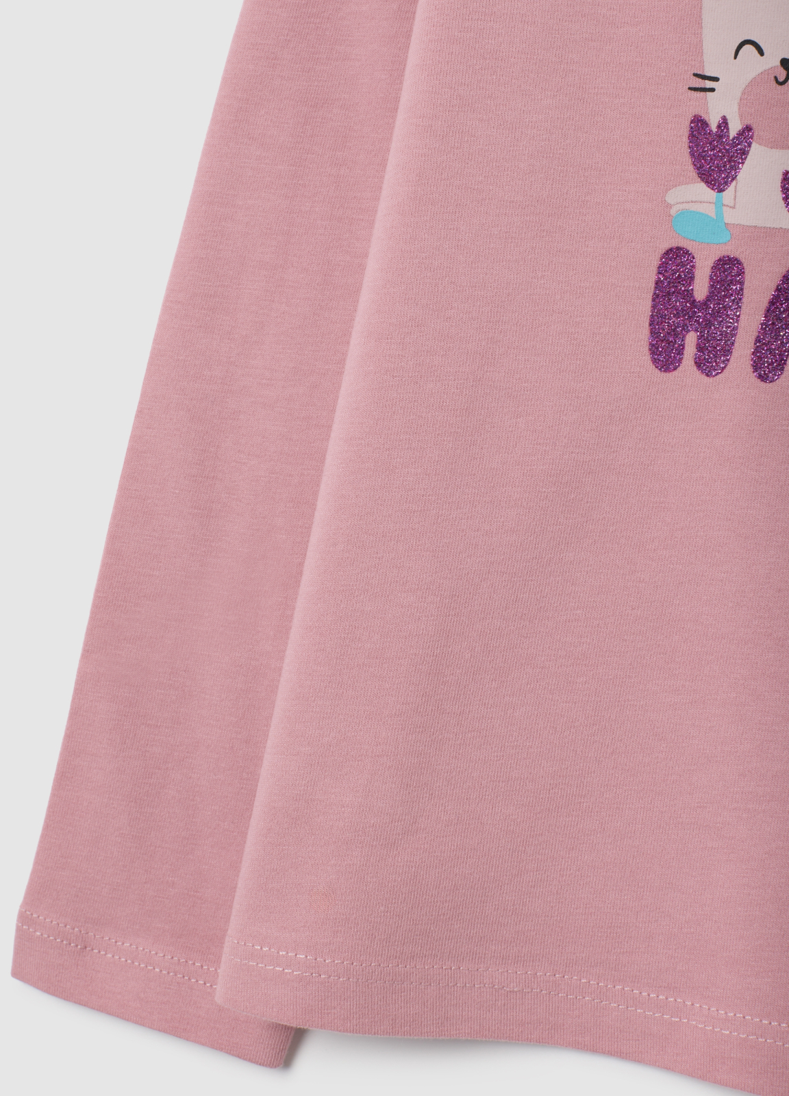 Caracteristici: Tricou roz cu imprimeu, bumbac elastic, OVS KIDS, fete 3-10 ani. Mâneci lungi, confortabil și practic pentru ținute zilnice.