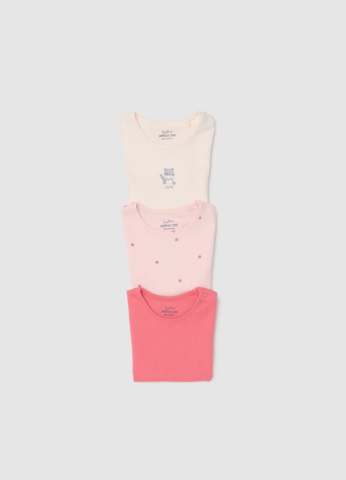 Tip Produs: Set triplu body-uri multicolore pentru fete nou-născute, din bumbac 100%