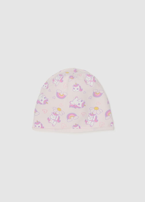 Tip Produs: Șapcă multicoloră pentru fetițe din bumbac elastic, cu imprimeuri