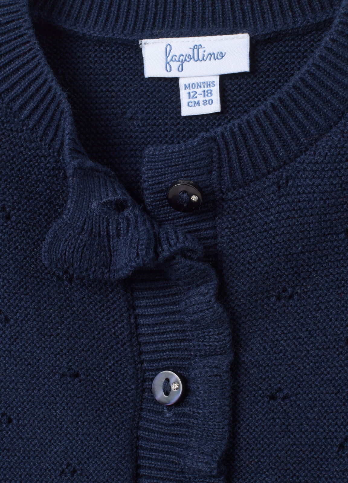 Caracteristici: Acest cardigan perforat albastru din linia Fagottino este conceput pentru fete cu vârste între 9 și 36 de luni, fabricat din bumbac pur pentru a asigura căldura și confortul în zilele mai răcoroase. Închizătoarea cu nasturi îl face practic și versatil, iar croiala normală garantează libertate confortabilă de mișcare.