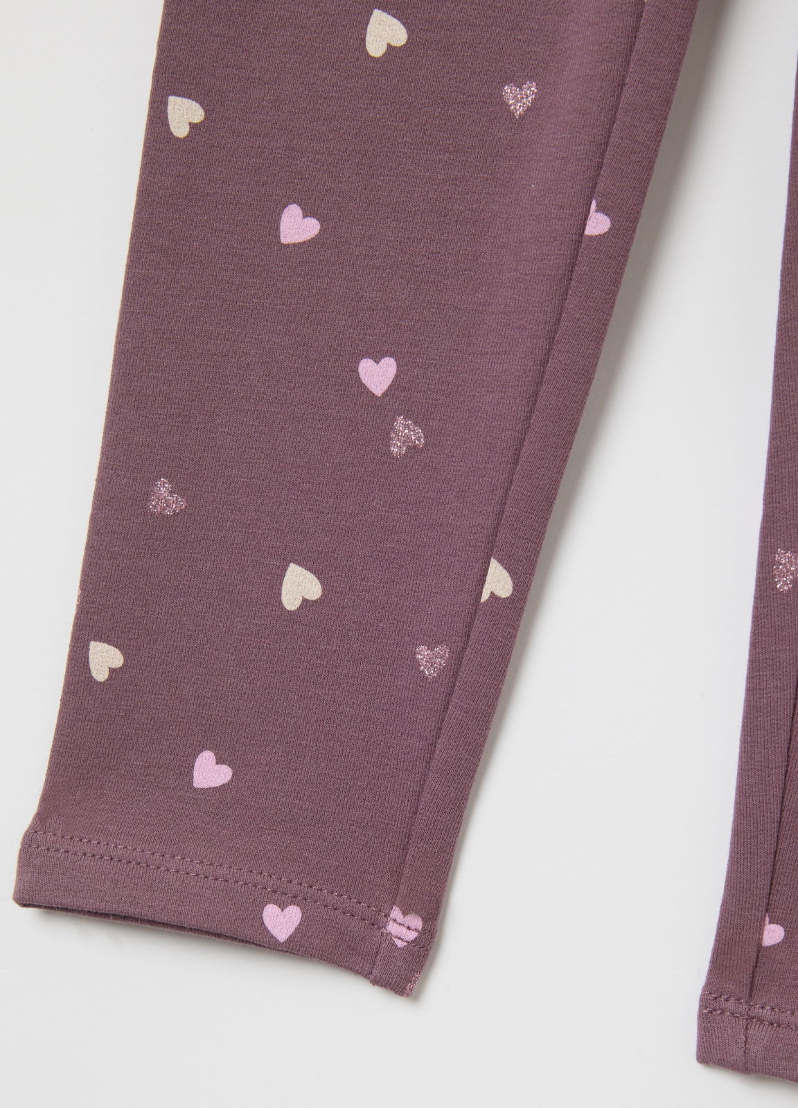 Tip Produs: Colanți mov din bumbac elastic cu imprimeu inimă