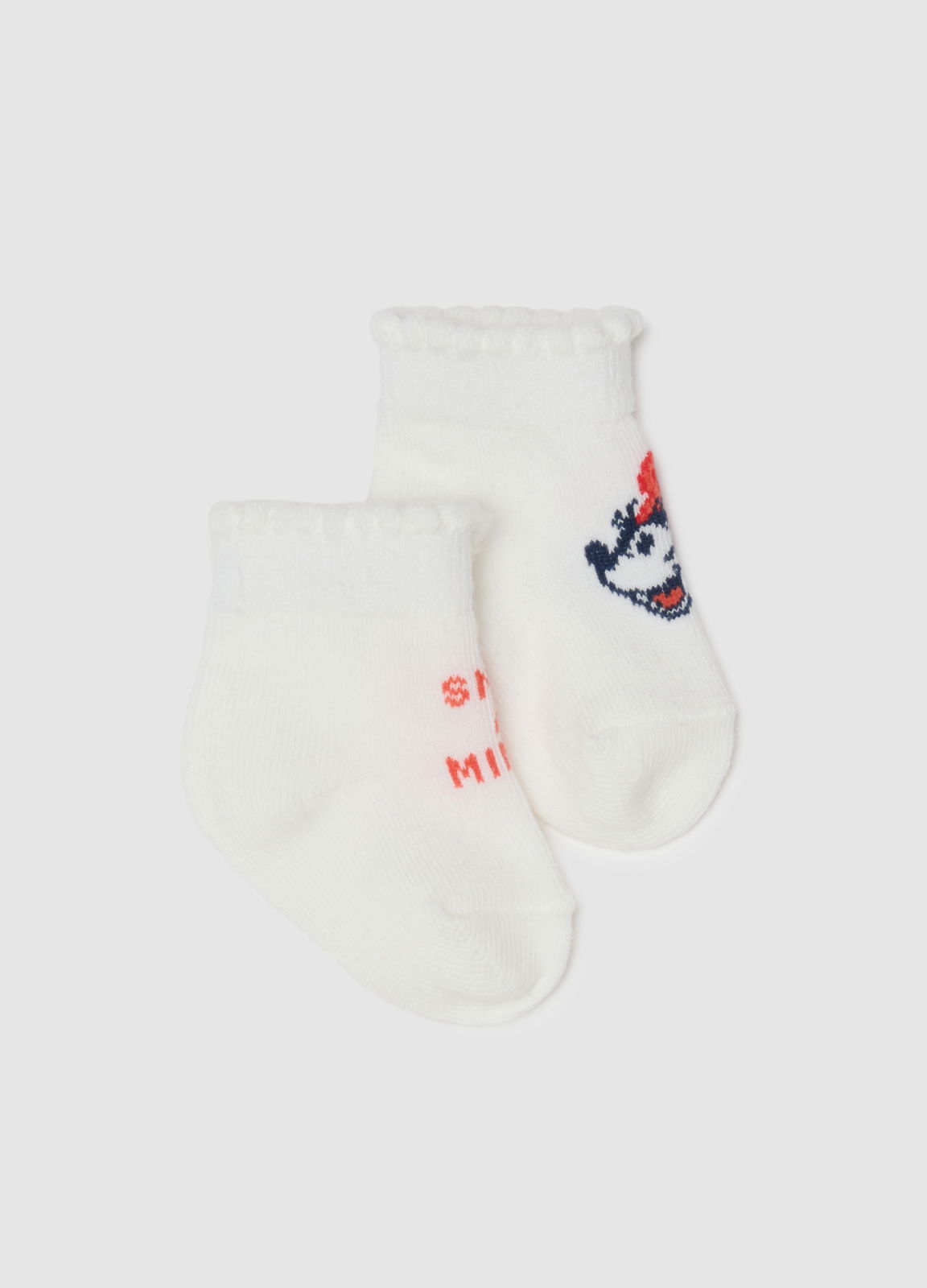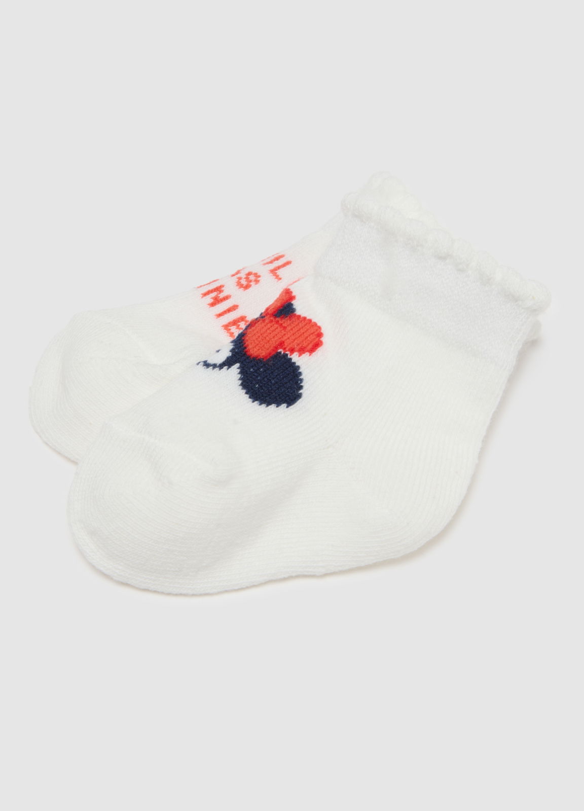 Tip Produs: Ghetuțe albe tricotate și din bumbac pentru bebeluși, cu broderie Minnie