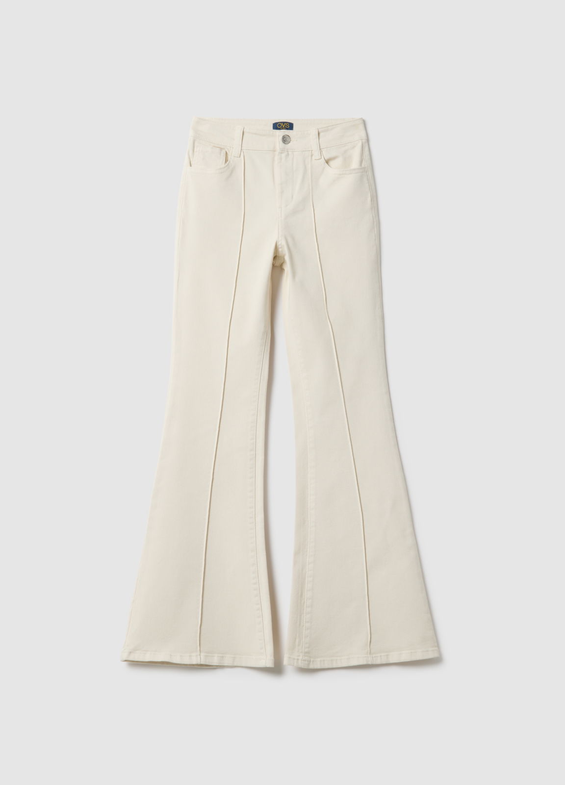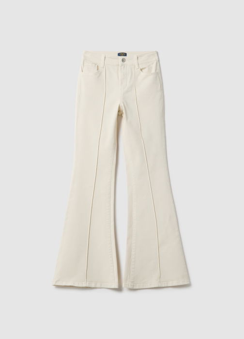 Tip Produs: Pantaloni evazați bej, din bumbac elastic, pentru fete