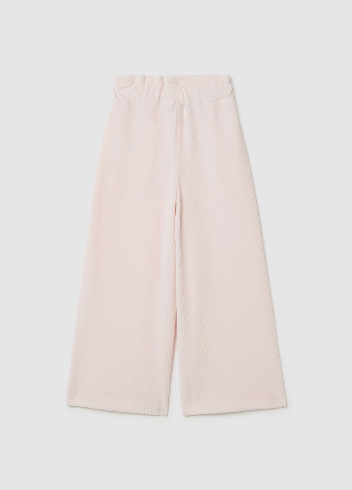 Caracteristici: Pantaloni roz din chenille pentru fete, din bumbac și stretch, cu talie elastică și croială regular, pentru vârsta 3-10 ani.