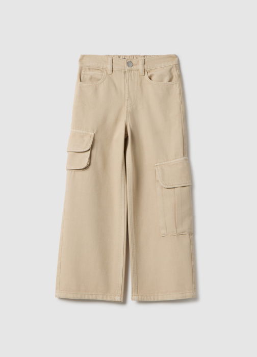 Caracteristici: Pantalonii cargo bej din linia OVS KIDS sunt ideali pentru fetele cu vârste între 3 și 10 ani, perfecți pentru sezonul primăvară-vară. Realizați din bumbac pur, oferă confort și libertate de mișcare datorită designului practic și buzunarelor laterale. Elasticul din partea din spate a taliei asigură o croială regular fit în timpul activităților în aer liber, fiind o piesă esențială a garderobei sezoniere.