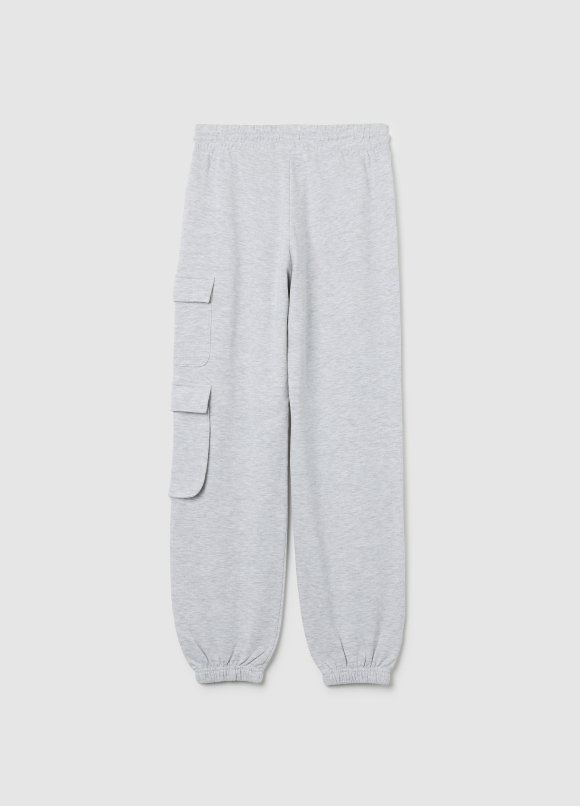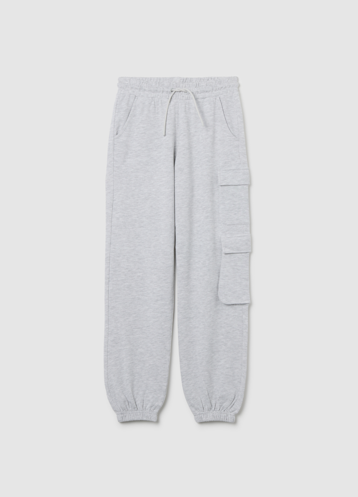 Tip Produs: Pantaloni jogger gri pentru fete din amestec de bumbac, croi regular fit, cu buzunare cargo