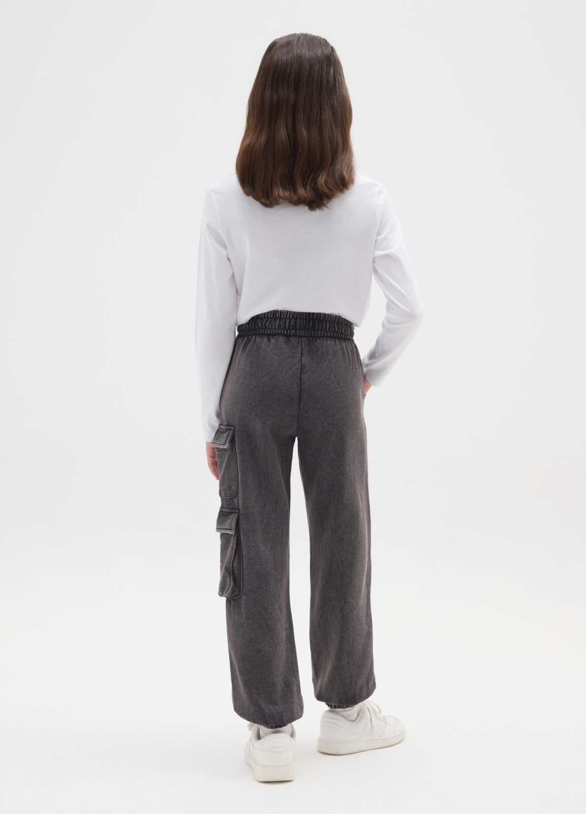 Tip Produs: Pantaloni cargo gri pentru fete, din amestec de bumbac, croială regular