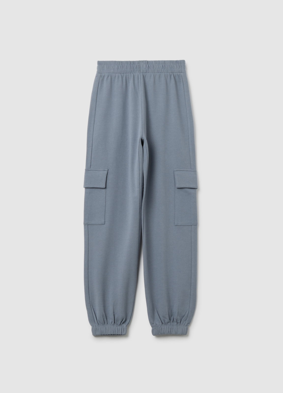 Tip Produs: Pantaloni gri din bumbac pentru fete, cu accente albastre