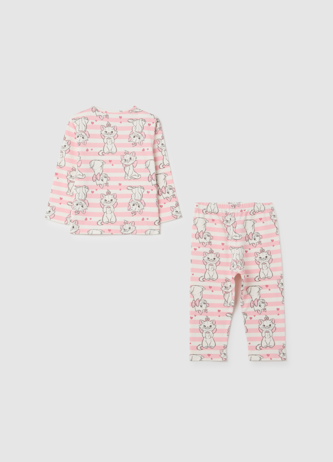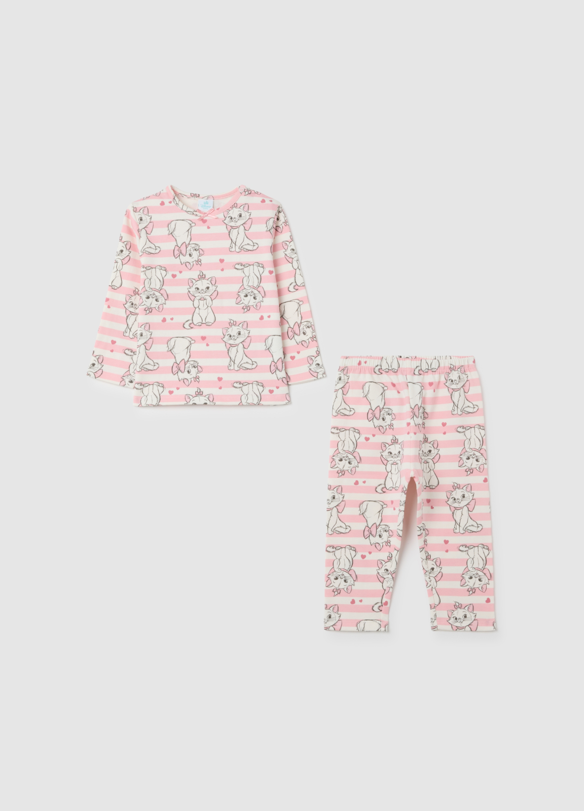Tip Produs: Pijama pentru bebeluși din bumbac 100%, alb cu roz, în dungi, cu imprimeu Disney