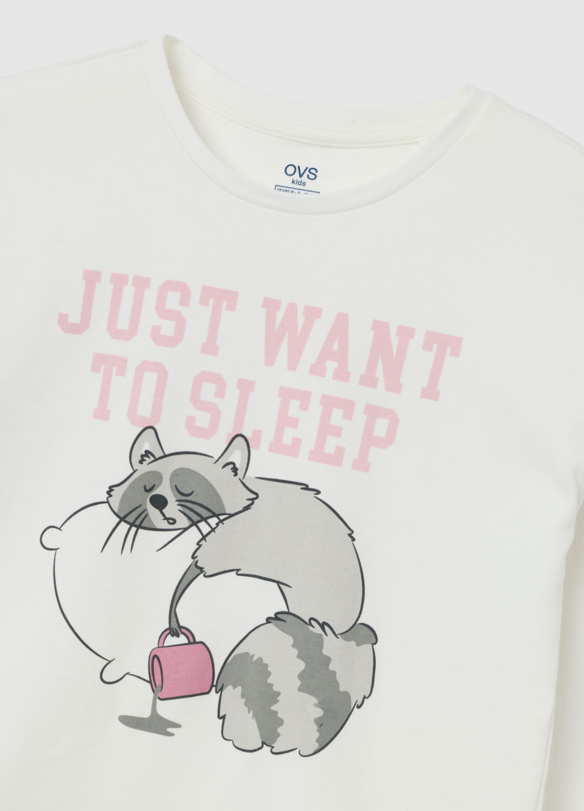 Caracteristici: Descoperă pijamaua lungă alb-roz de la OVS Kids, ideală pentru fetițe între 3 și 15 ani. Realizată din bumbac pur, oferă finețe și confort pe durata nopții. Designul include un top alb cu imprimeu distractiv cu raton și pantaloni roz decorați cu stele. Cu mâneci lungi și guler rotund, este perfectă pentru nopțile răcoroase — o alegere plăcută și practică pentru garderoba fetelor.