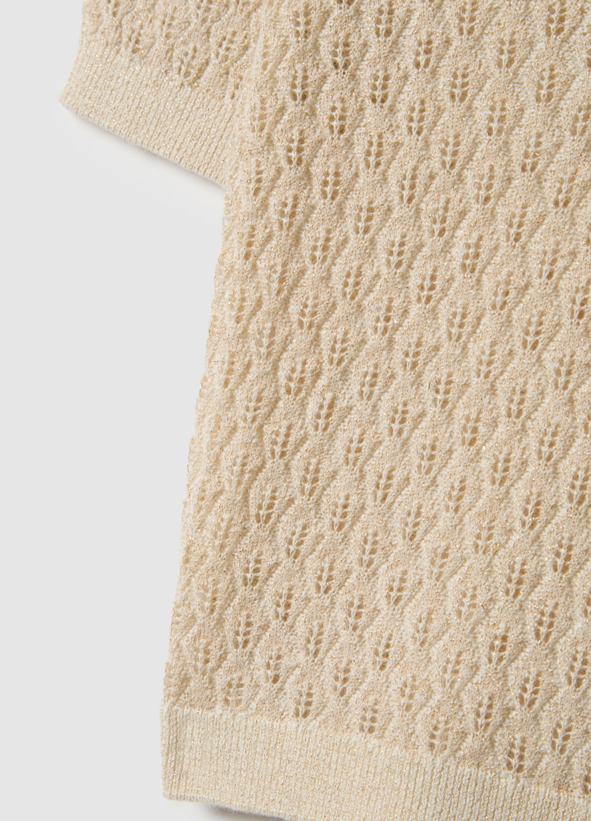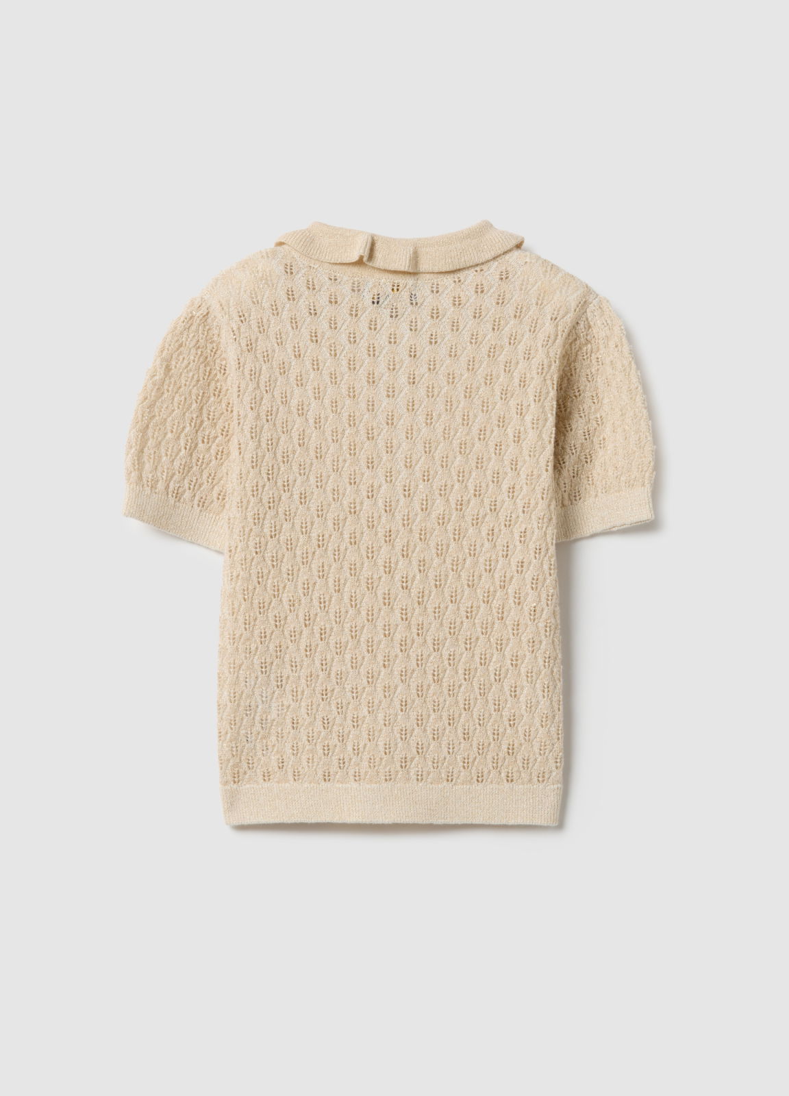 Tip Produs: Tricou polo bej pentru fete din amestec de bumbac, croială regular, cu detaliu broderie perforată