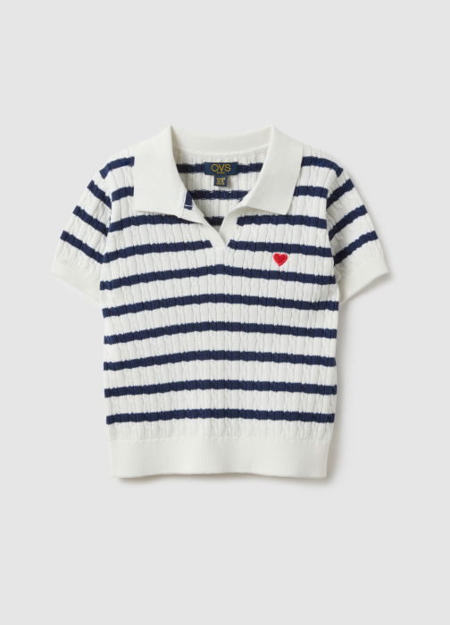 Caracteristici: Tricoul polo cu dungi multicolore din linia OVS KIDS este perfect pentru fete cu vârste între 3 și 10 ani. Realizat din bumbac 100%, oferă confort și finețe. Designul simplu și versatil este completat de o mică inimă roșie, fiind potrivit pentru orice ocazie. Croiala regular asigură libertate de mișcare, fiind o piesă practică și funcțională pentru garderoba de zi cu zi.