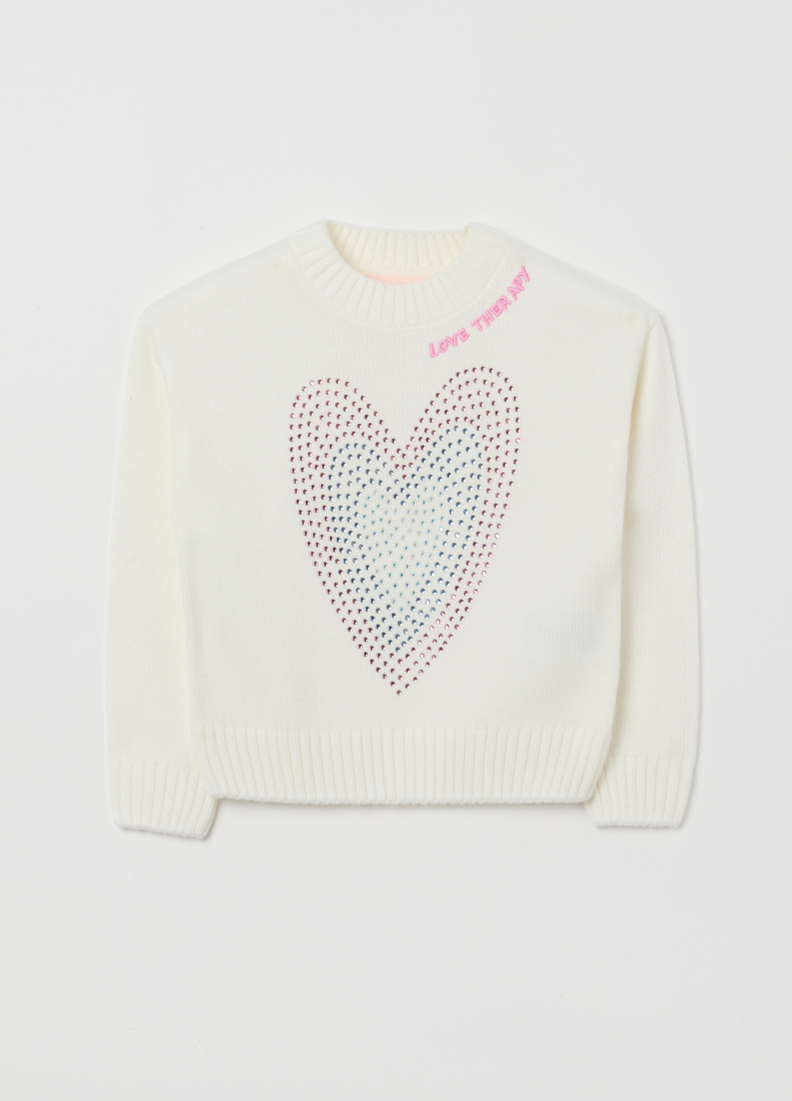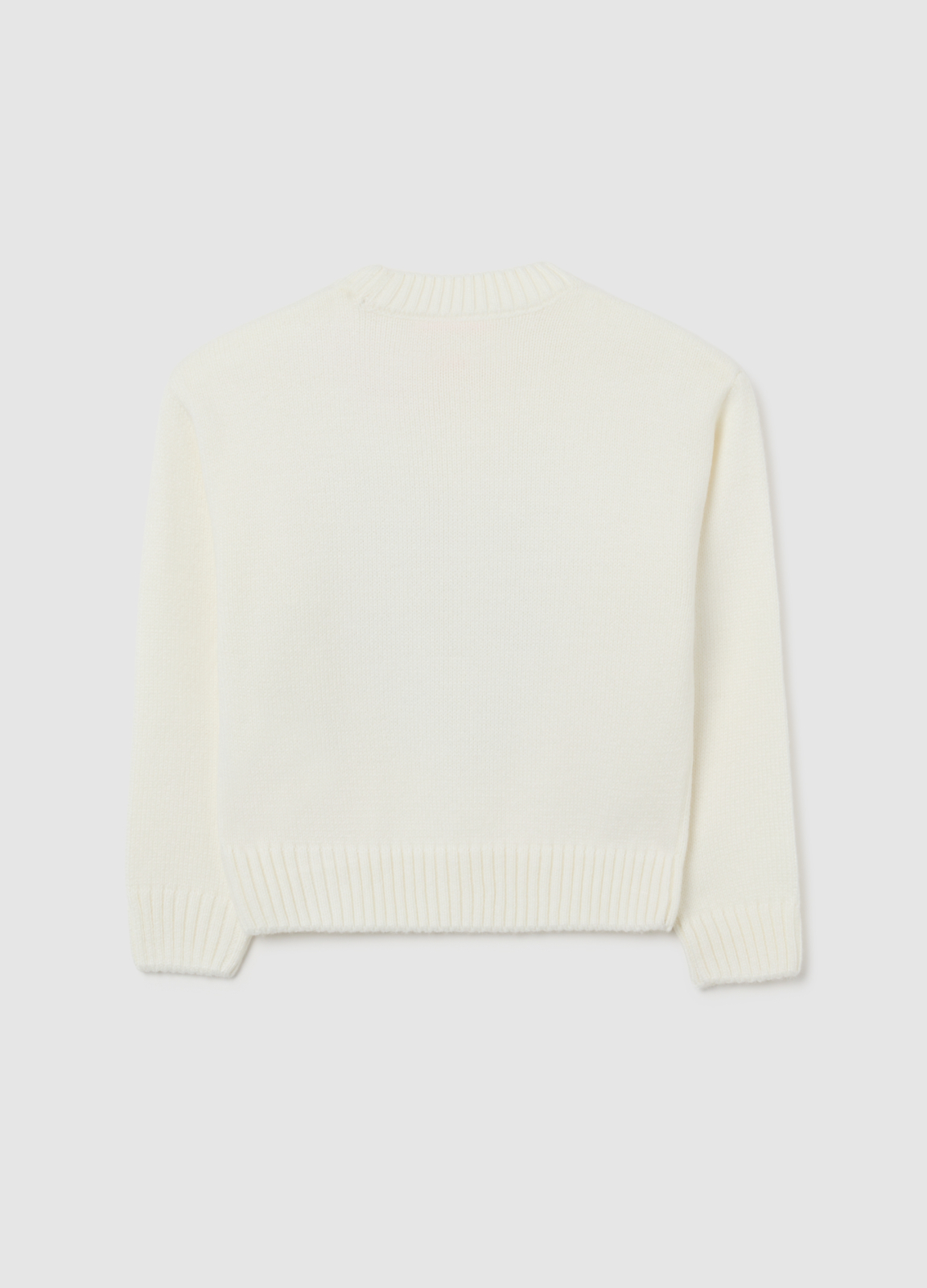 Caracteristici: Pulover alb OVS KIDS pentru fete 3-10 ani, croială normală, guler rotund, mâneci lungi, cu aplicații de strasuri pe piept.
