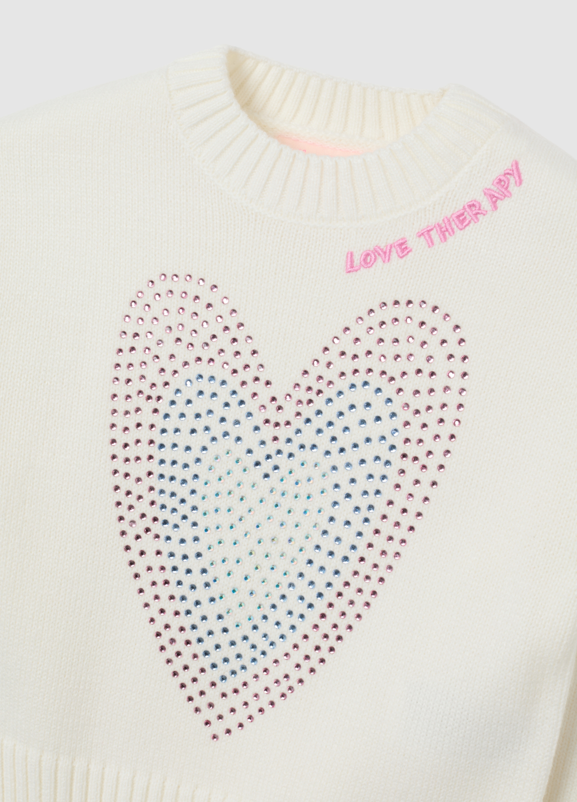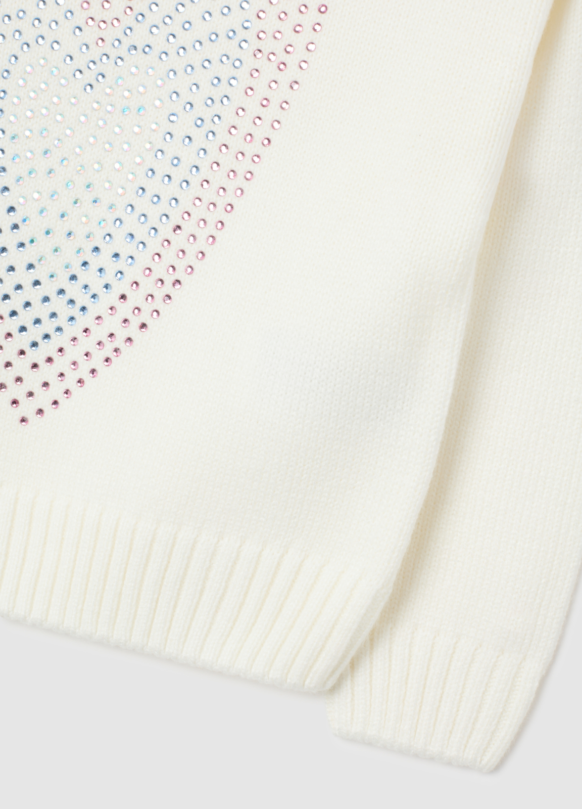 Tip Produs: Pulover alb pentru fete, croială normală, cu strasuri