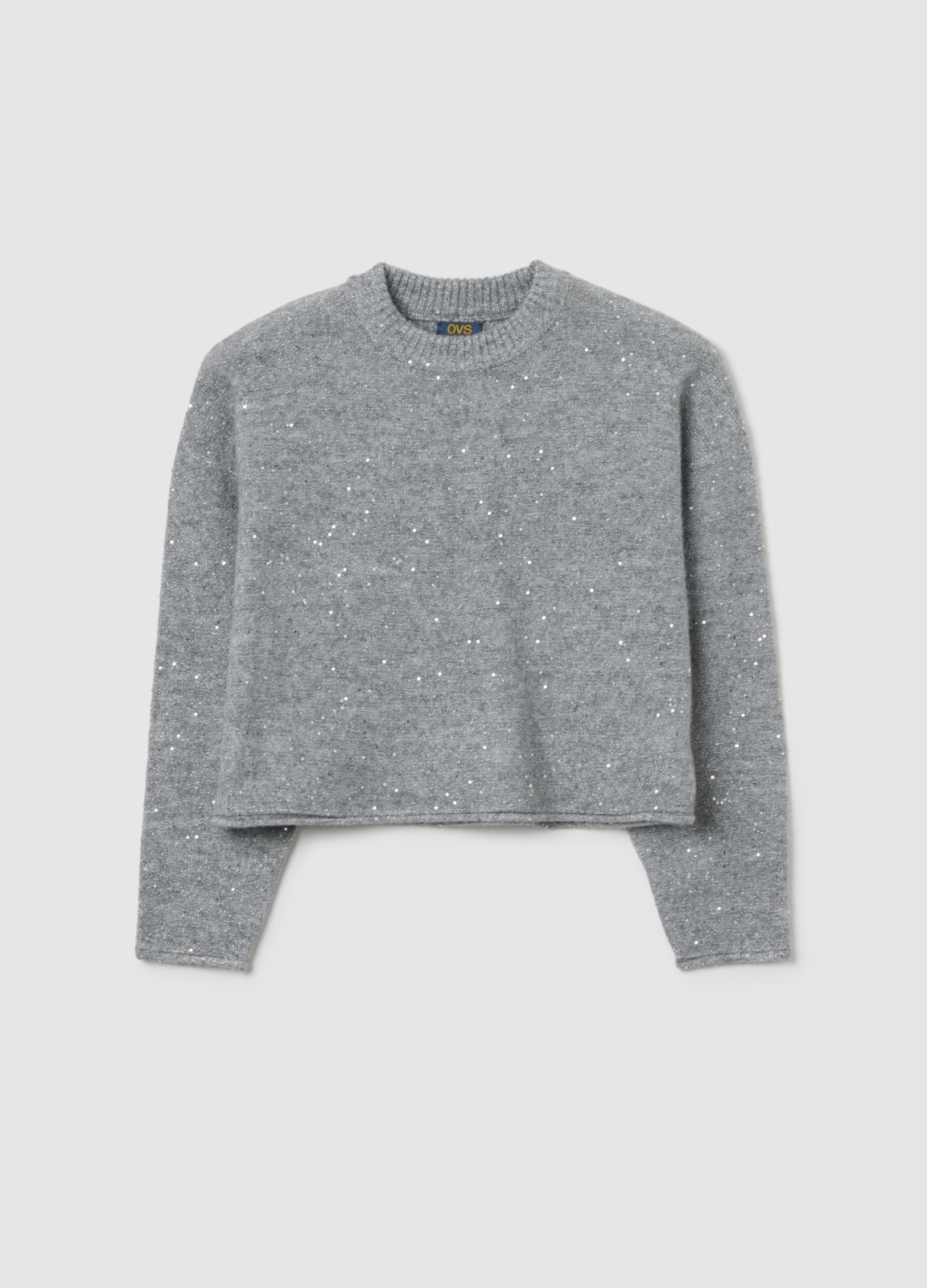 Tip Produs: Pulover gri cu guler rotund și lurex
