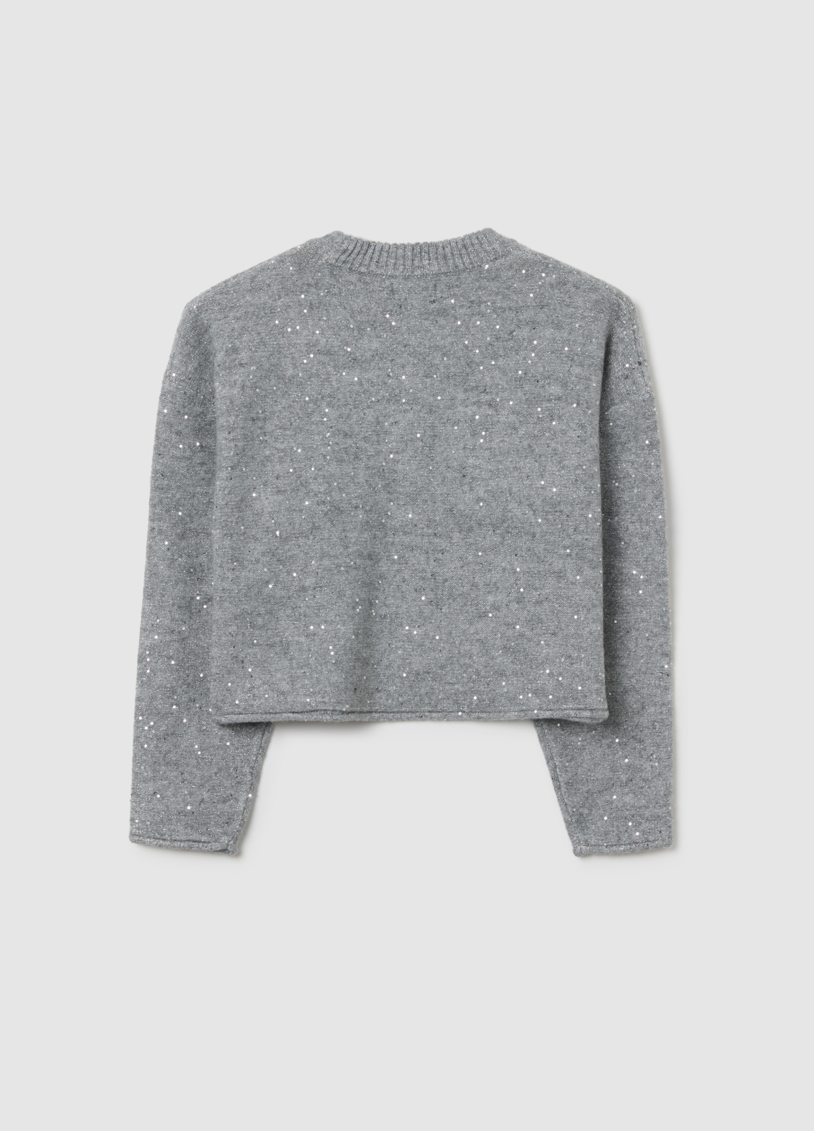 Caracteristici: Pulover gri cu guler rotund pentru fete, ideal pentru zile reci. Din material elastic cu fibră metalică, oferă strălucire fără a sacrifica confortul. Croială normală, potrivit pentru fete 10-15 ani.