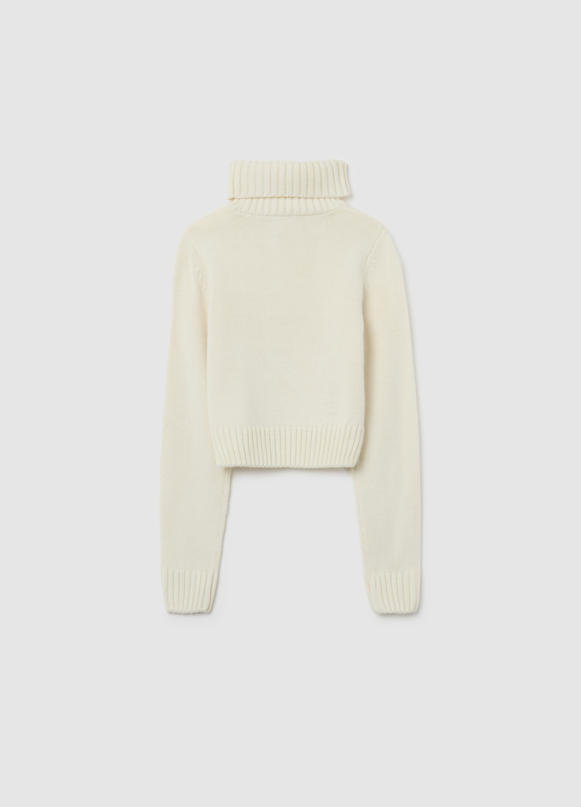 Tip Produs: Pulover alb cu guler înalt pentru fete, croială regular