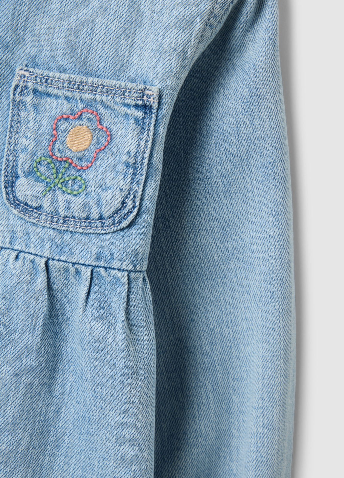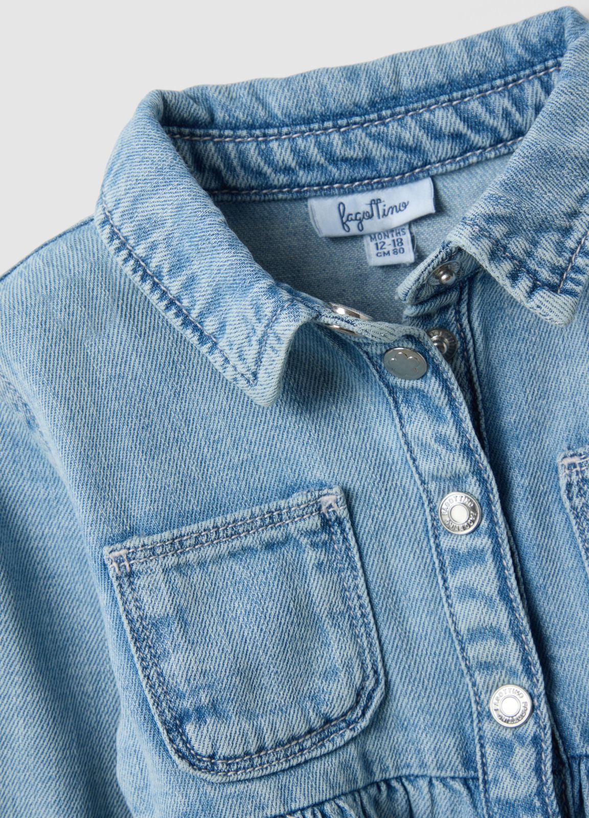 Caracteristici: Rochia albastră din amestec de bumbac și denim din linia Fagottino este perfectă pentru primăvară și vară. Oferă confort și practicitate prin mânecile trei sferturi și guler. Închiderea frontală cu capse facilitează îmbrăcarea, iar buzunarul decorat cu broderie florală adaugă un plus de originalitate. O alegere excelentă pentru orice ocazie.