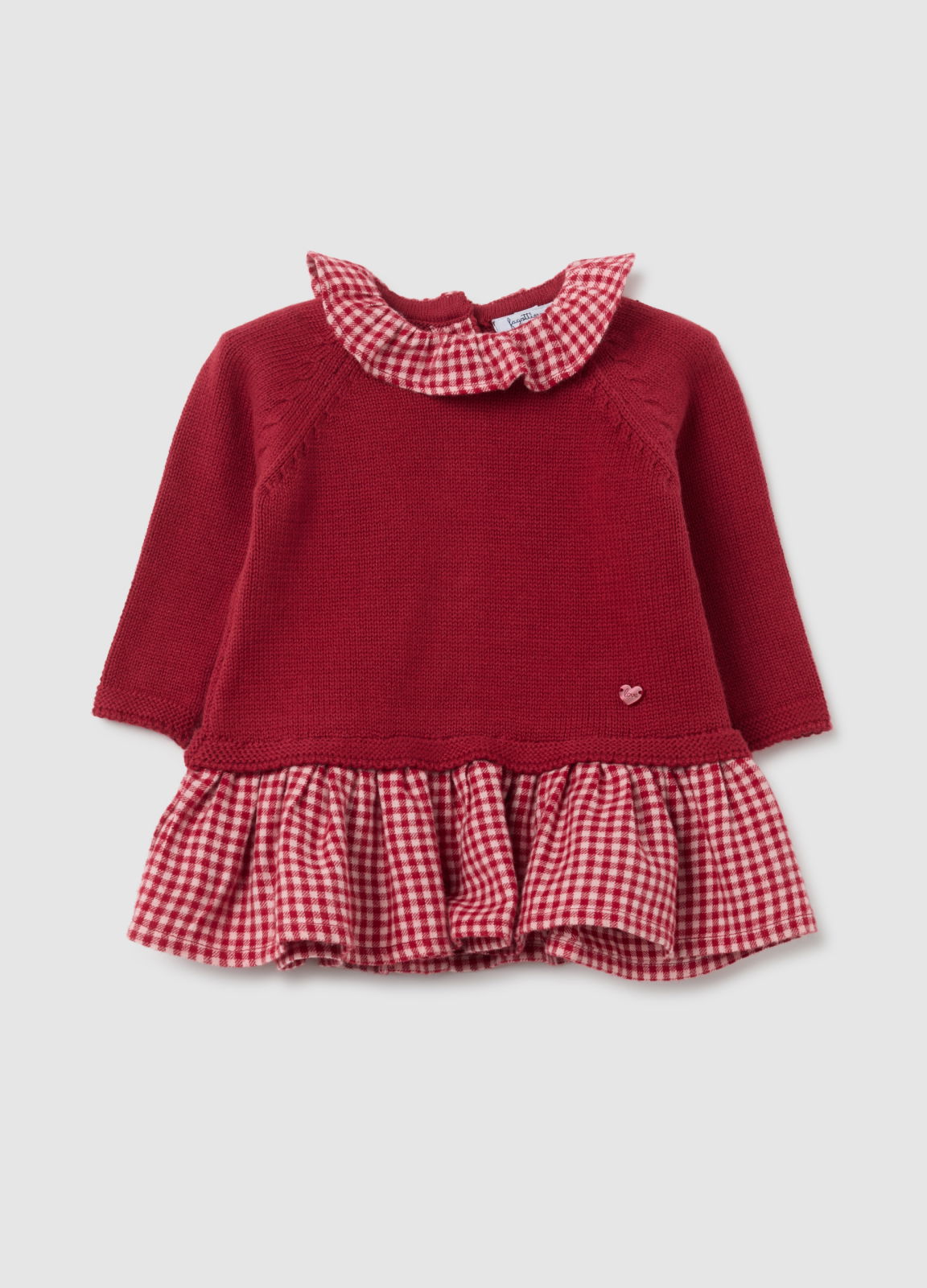 Caracteristici: Această rochie roșie pentru fetițe din colecția Fagottino este confecționată din bumbac 100%, asigurând moliciune și confort pentru pielea delicată. Designul include un guler elegant și o fustă volanată cu imprimeu în carouri, adăugând stil și vivacitate. Închiderea cu nasturi la spate facilitează îmbrăcarea și asigură o potrivire confortabilă. Ideală pentru fetițe, oferă practicitate și confort pentru sezoanele mai reci.