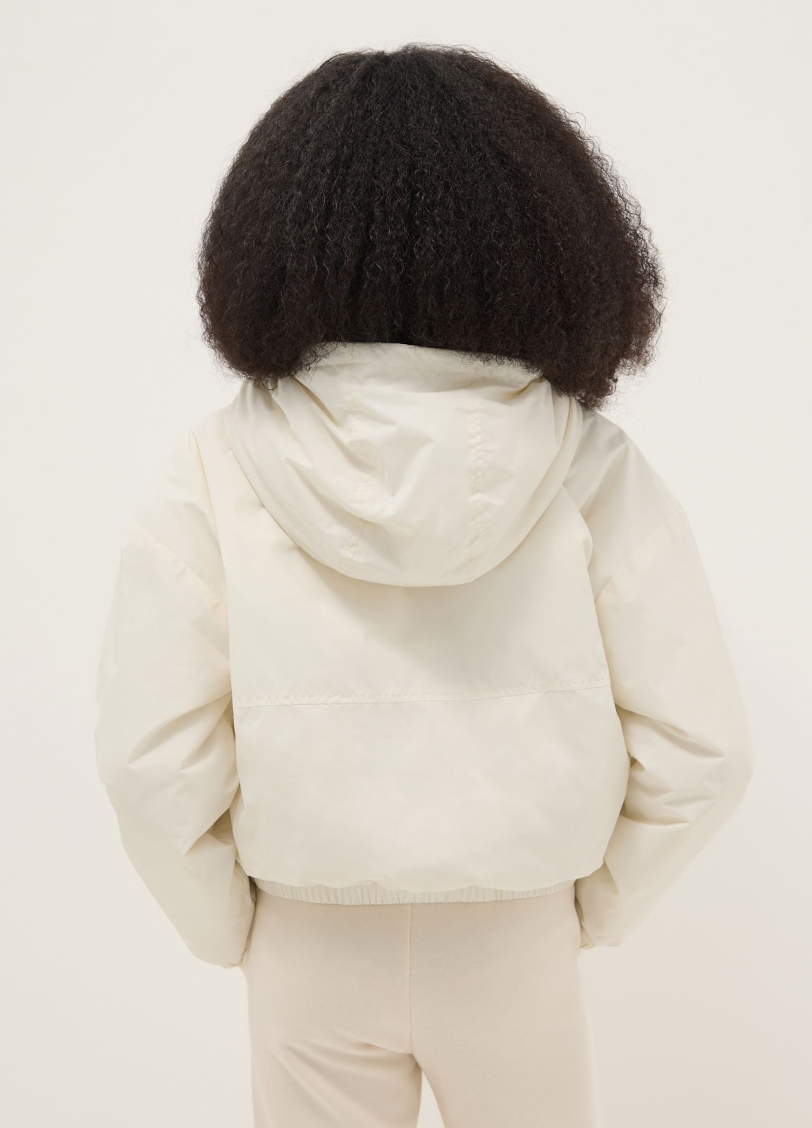 Tip Produs: Geacă albă matlasată pentru fete, croială regular, cu glugă