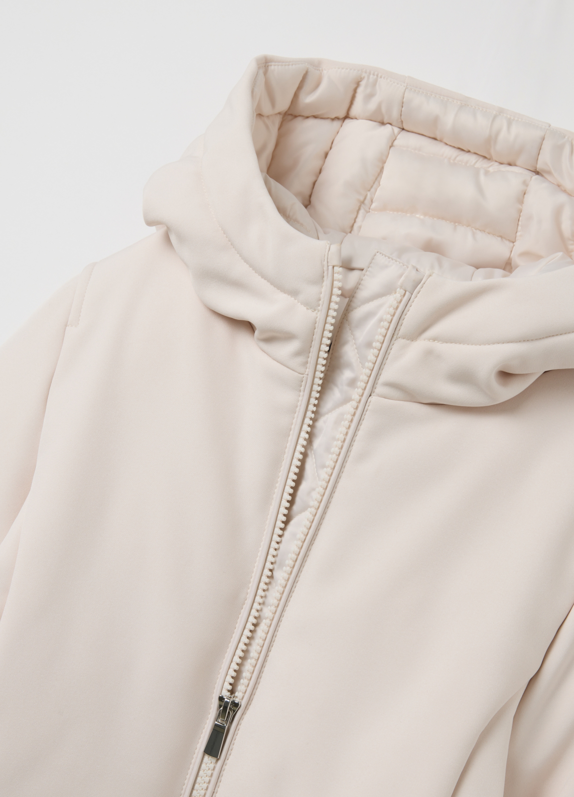 Tip Produs: Geacă bej matlasată pentru fete, croială regular, cu glugă și fermoar
