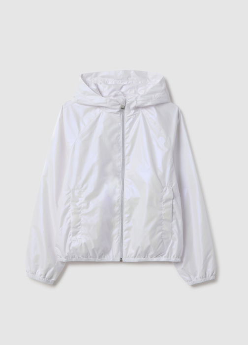 Tip Produs: Jachetă albă cu glugă pentru fete, croială regular