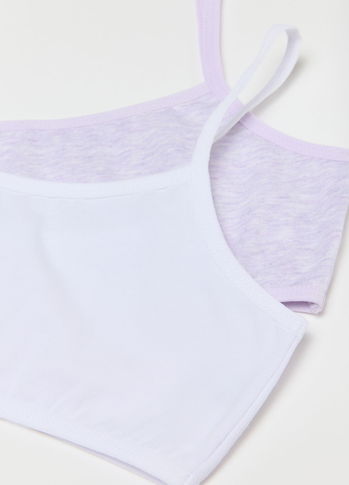 Caracteristici: Acest set de două sutiene multicolore confortabile din linia OVS KIDS este conceput pentru fete cu vârste între 9 și 14 ani. Realizate din bumbac elastic, asigură confort și libertate de mișcare. Bretelele subțiri oferă o potrivire comodă, iar materialul moale și respirabil este plăcut pe piele.