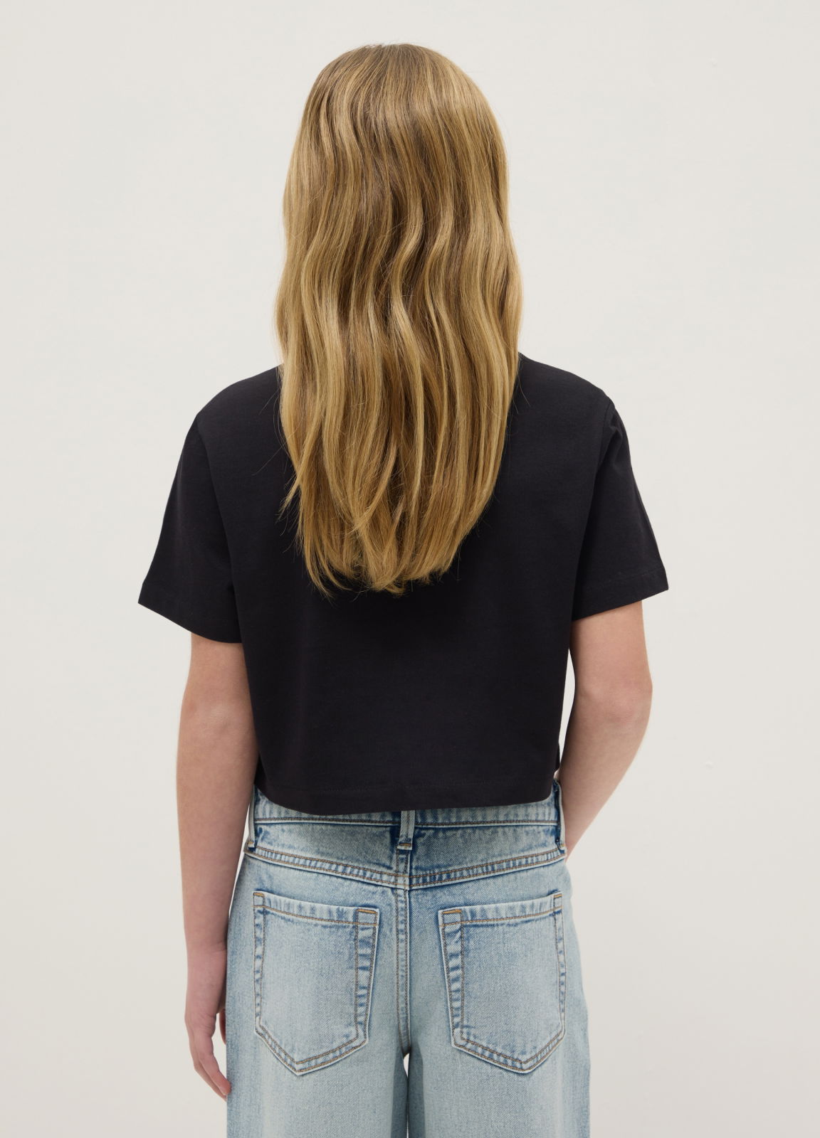 Tip Produs: Tricou negru pentru fete, din bumbac 100%, croială boxy