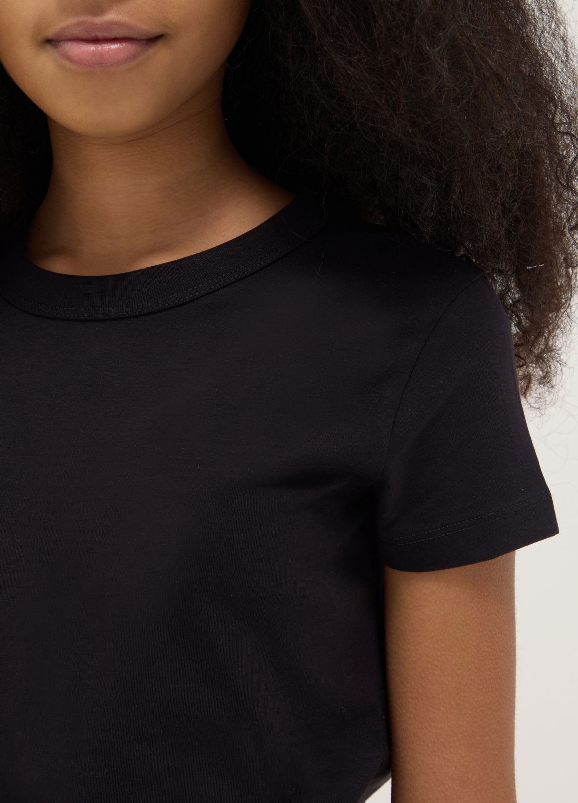 Tip Produs: Tricou negru pentru fete din amestec de bumbac, croială regular