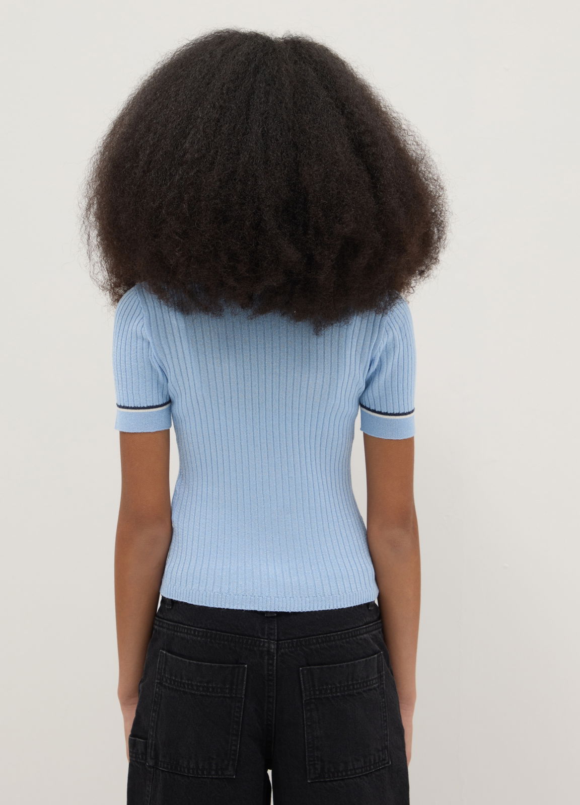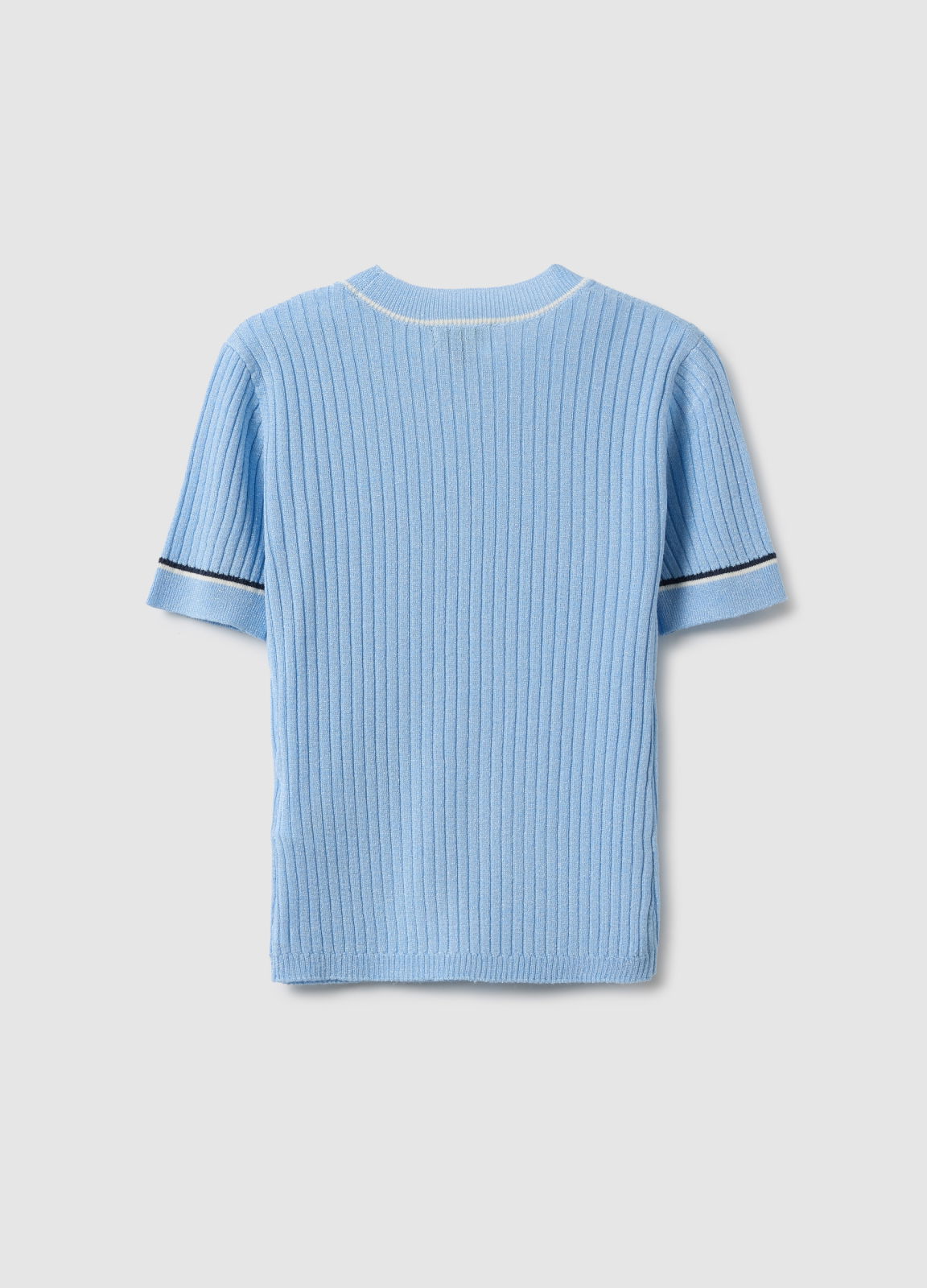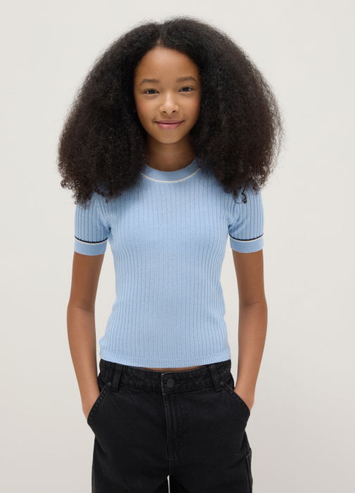 Tip Produs: Tricou albastru deschis în dungi, slim fit, pentru fete