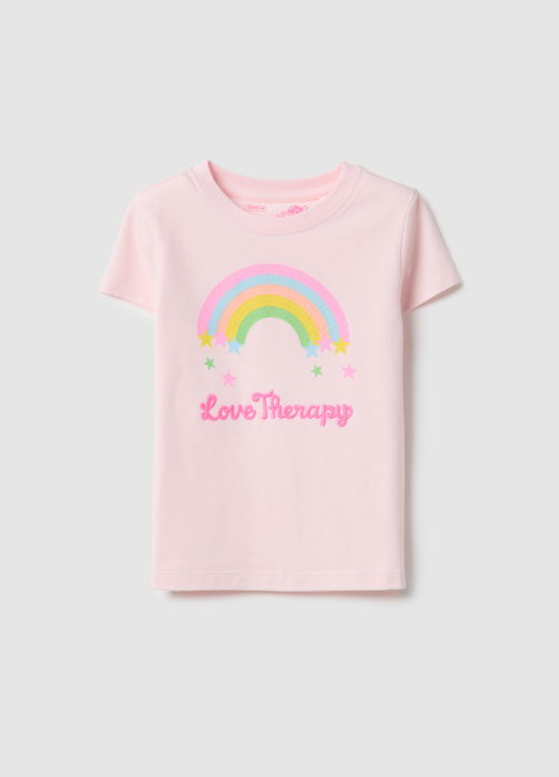 Caracteristici: Tricoul roz din linia OVS KIDS este conceput pentru fete cu vârsta între 3 și 10 ani și realizat din bumbac elastic pentru confort și libertate de mișcare. Designul vibrant cu curcubeu și textul „Love Therapy” adaugă veselie articolului. Datorită țesăturii moi și respirabile, este ideal pentru zilele calde.