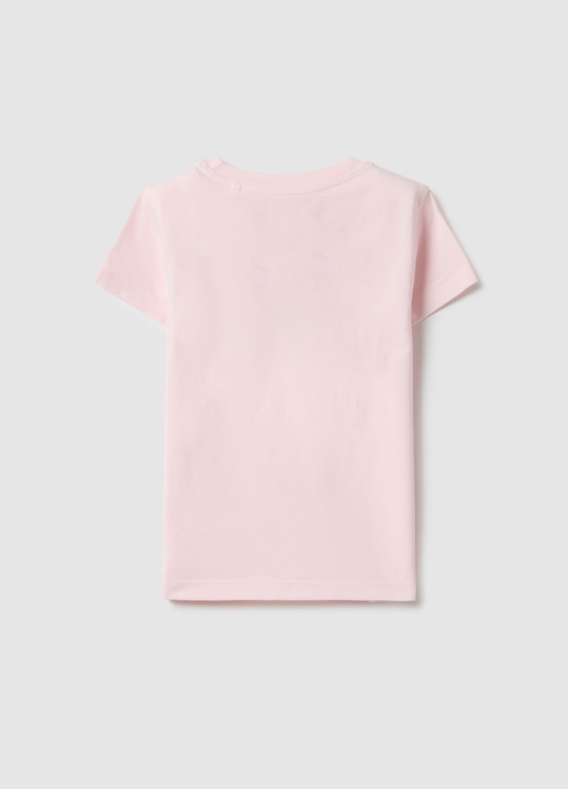 Tip Produs: Tricou roz pentru fete din amestec de bumbac, croială normală, cu imprimeu