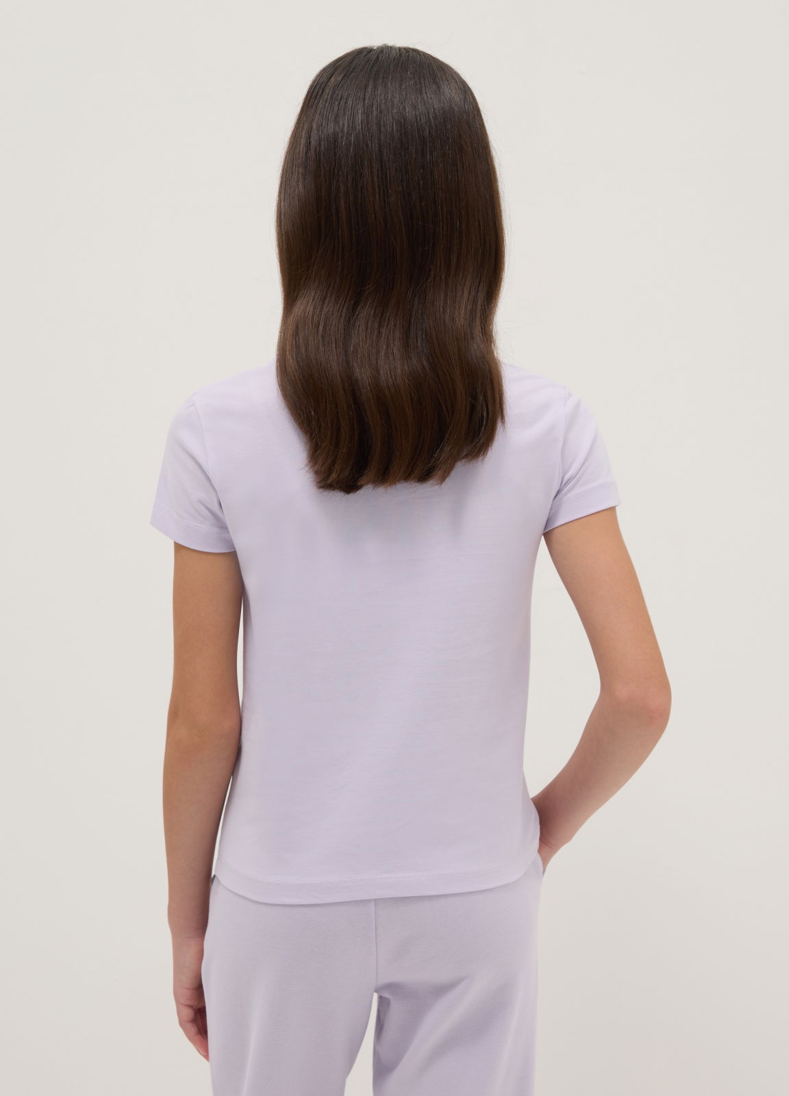 Tip Produs: Tricou mov pentru fete din amestec de bumbac, croială regular