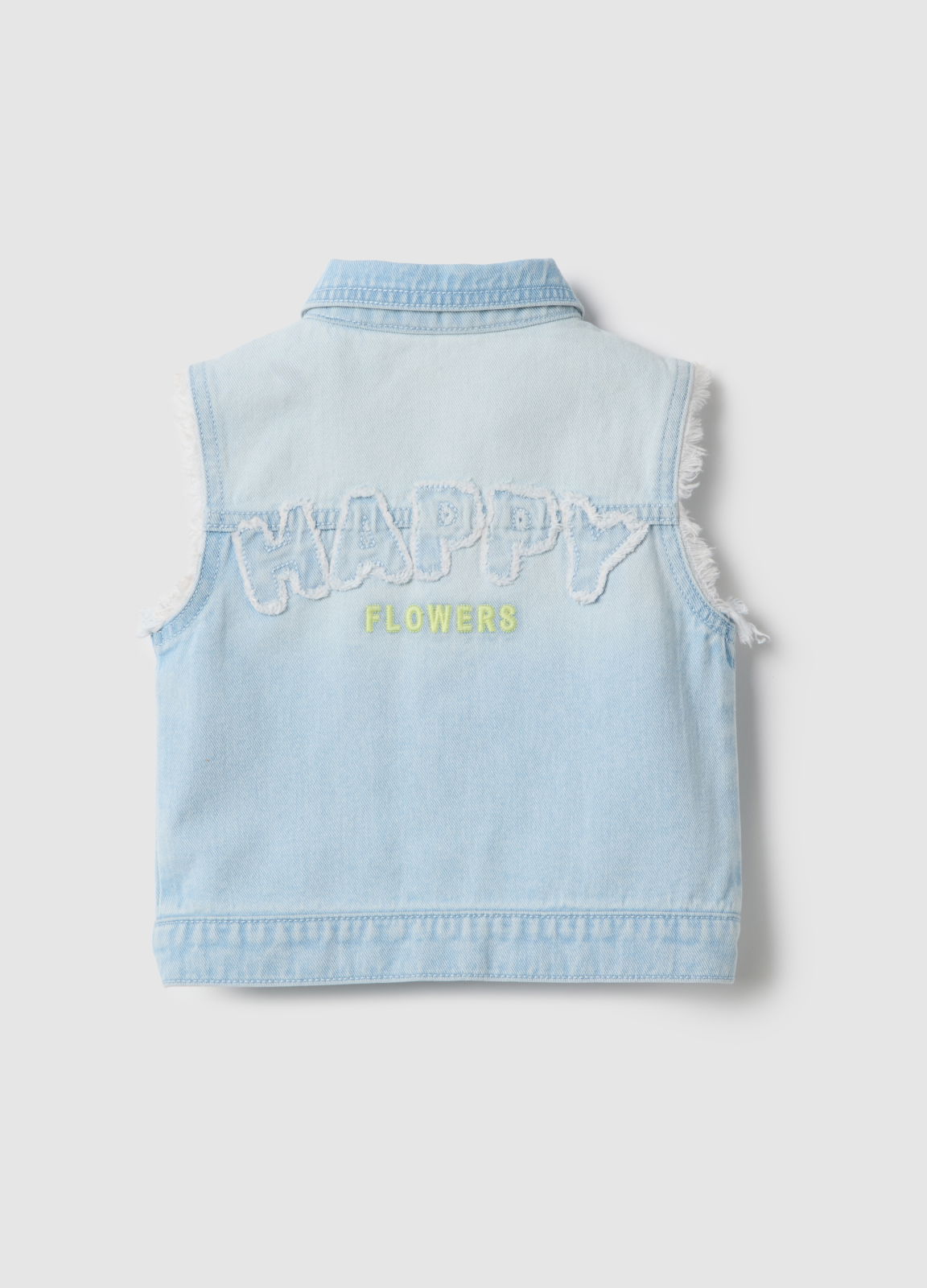 Caracteristici: Vesta din denim bleu deschis pentru fete, linia OVS KIDS, din bumbac 100%, un articol versatil și practic, pentru vârsta 3–10 ani. Detalii cu franjuri pe margini, nasturi tip capse pentru ușurință în folosire. Croială regular, perfectă pentru sezonul primăvară/vară, completând garderoba celor mici.