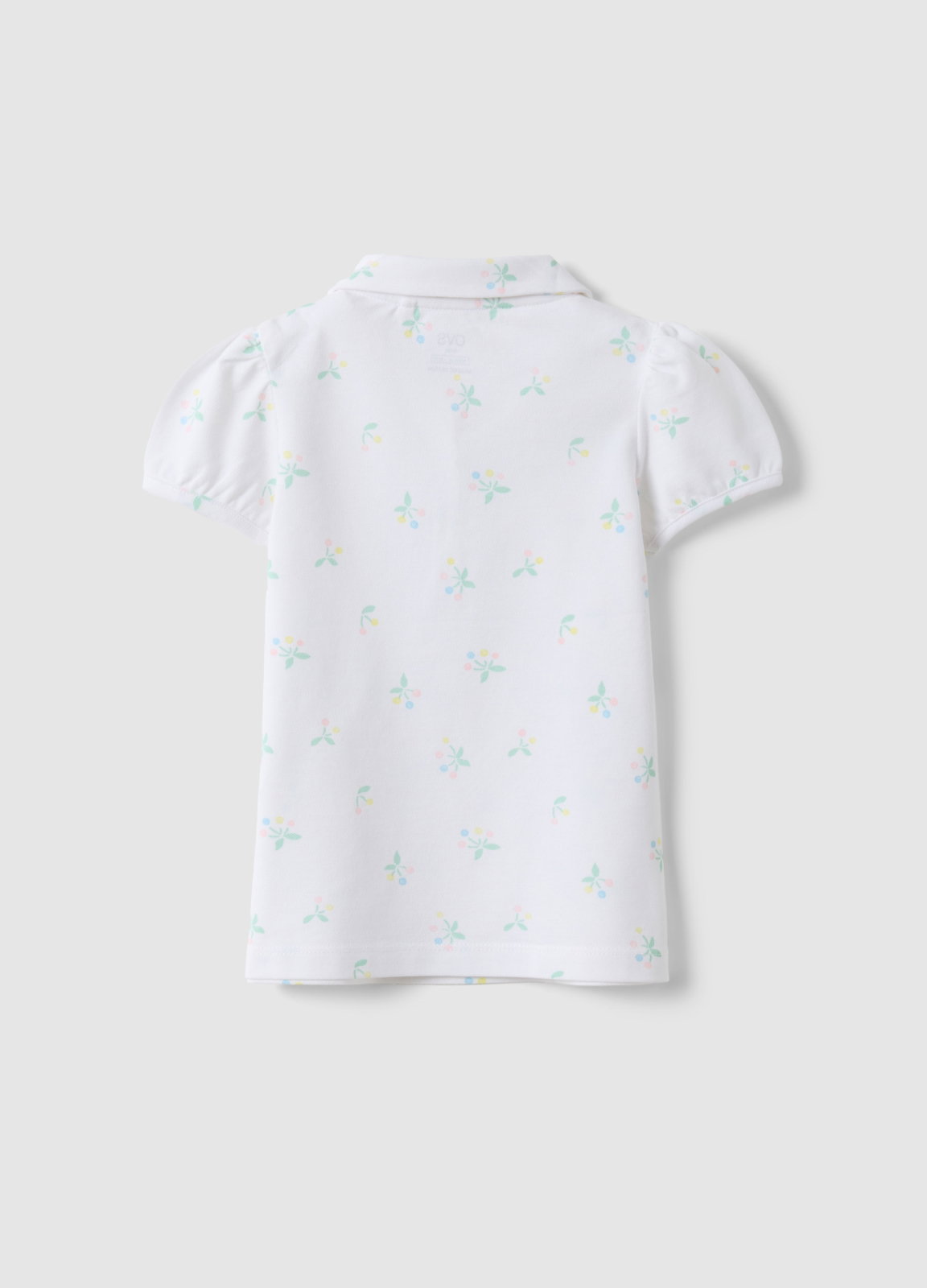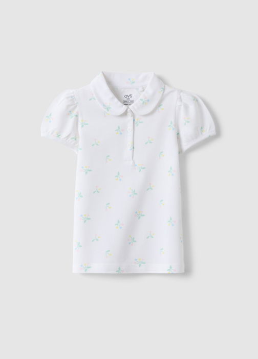 Tip Produs: Tricou polo alb pentru fete din bumbac, croială regular fit, cu model floral