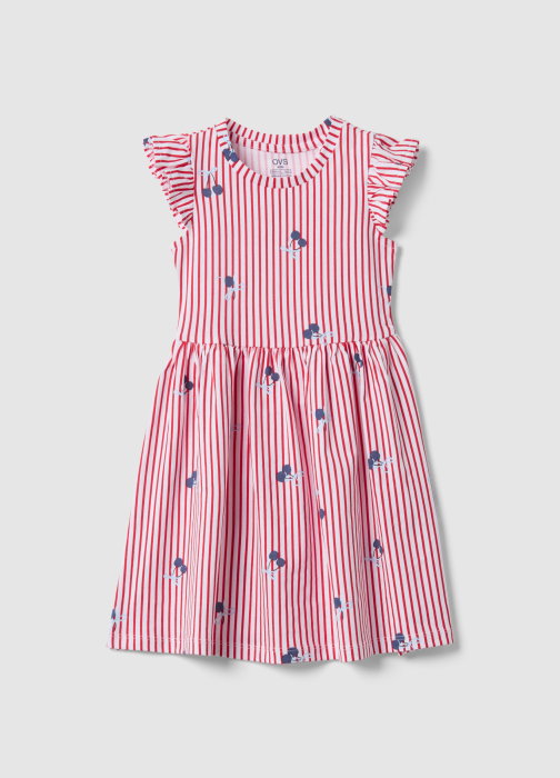 Caracteristici: Rochie roșie cu dungi din linia OVS KIDS, realizată din bumbac 100%, ideală pentru fete între 3 și 10 ani, perfectă pentru sezonul cald. Mâneci scurte și decolteu rotund pentru un design proaspăt și jucăuș. Detalii cu cireșe și volane pe umeri adaugă un plus de viață. Material moale și respirabil, potrivit pentru primăvară și vară, asigurând confort și libertate de mișcare.