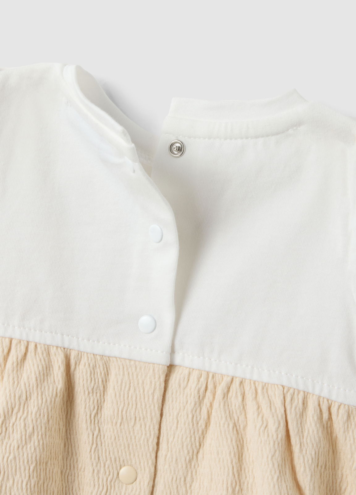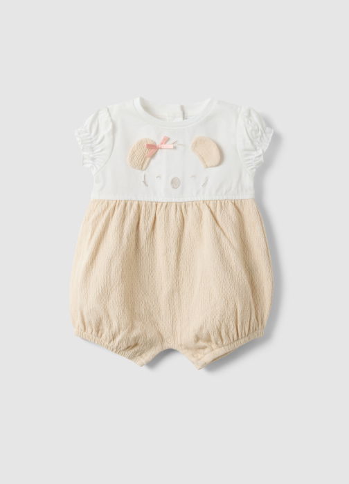 Caracteristici: Body-ul alb și bej pentru nou-născuți din linia Fagottino este realizat din bumbac organic pur, asigurând confort și moliciune pentru pielea delicată. Ideal pentru sezoanele calde, are un design fermecător cu urechi brodate în față. Închiderea cu nasturi la spate facilitează schimbarea, iar mânecile scurte oferă prospețime și libertate de mișcare în orice ocazie.