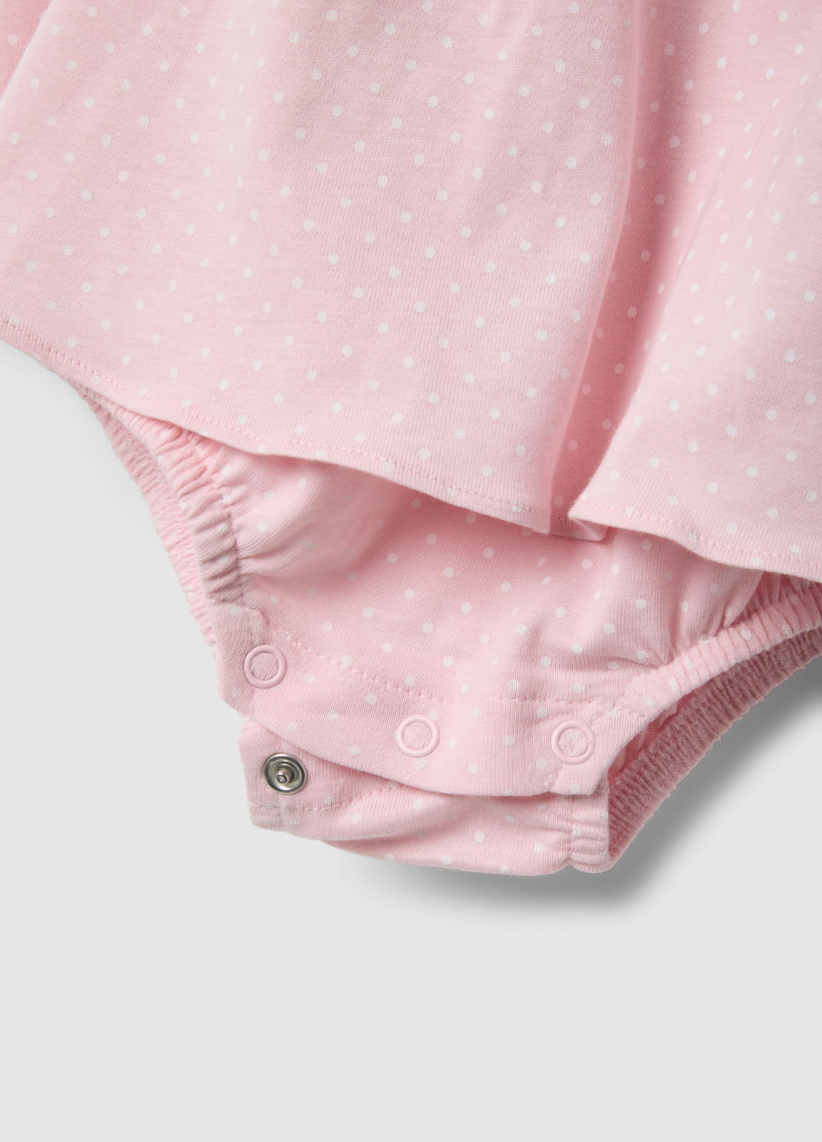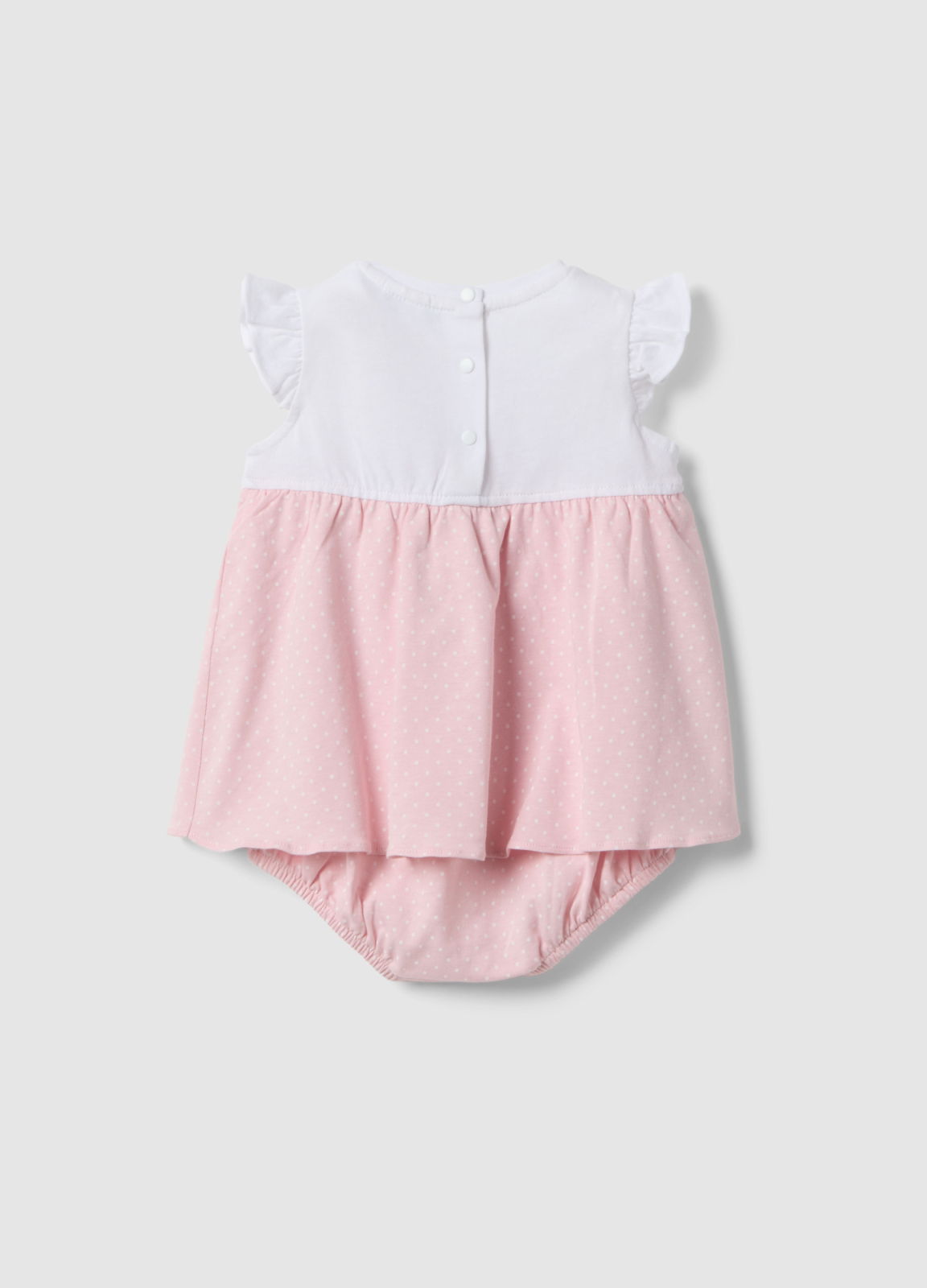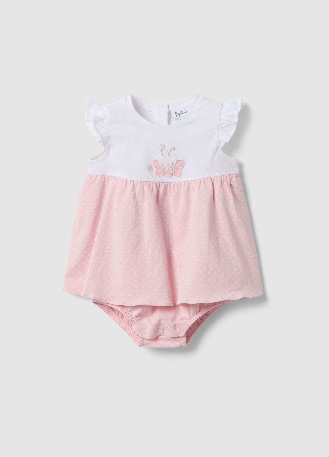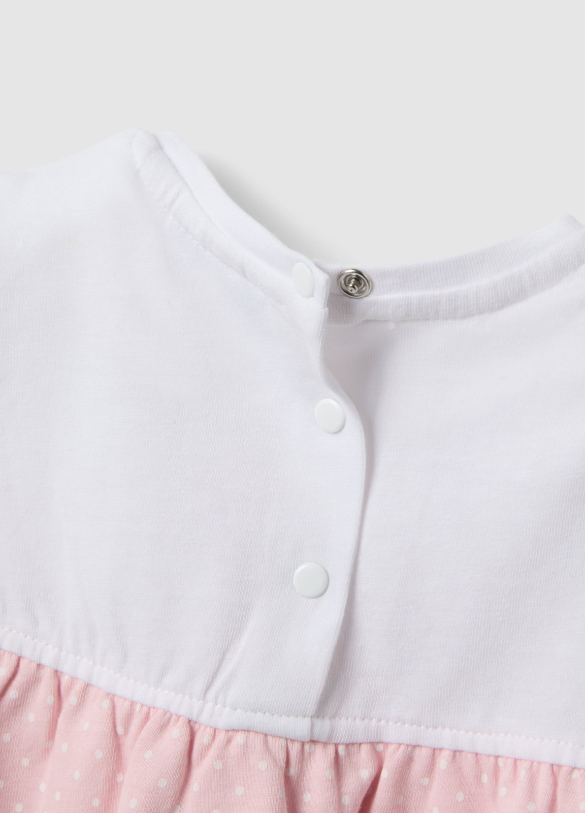 Caracteristici: Salopeta multicoloră pentru fetițe din linia Fagottino este realizată din bumbac organic 100%, asigurând confort și moliciune. Combinația vie de alb și roz și mânecile cu volănașe o fac adorabilă, perfectă pentru primăvară-vară. Capsele practice facilitează schimbarea hainelor, iar materialele de calitate și modelul cu buline o fac ideală pentru ocazii speciale.