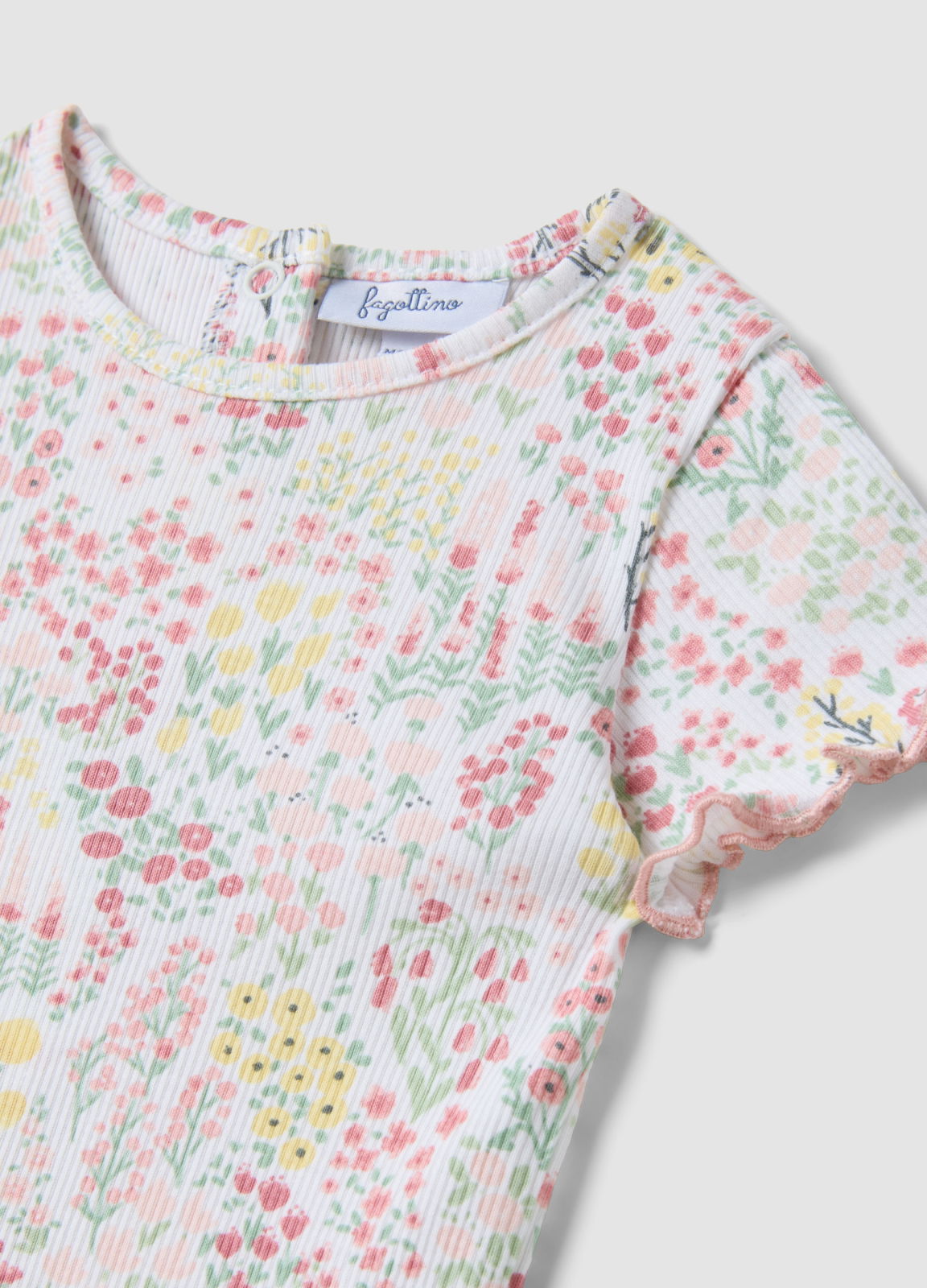 Caracteristici: Tricoul multicolor din linia Fagottino este perfect pentru fetițe în timpul verii. Realizat din bumbac organic pur, asigură moliciune și confort pentru pielea sensibilă. Designul floral vesel și mânecile scurte adaugă o notă de bucurie articolului. Croiala regular este ideală pentru primele luni de explorare.
