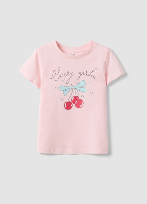 Tip Produs: Tricou roz pentru fete din bumbac pur, croială regular fit, cu imprimeu