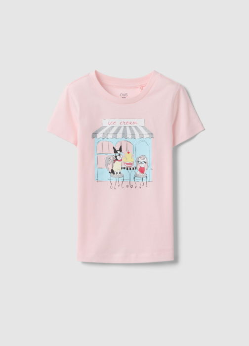 Caracteristici: Tricoul roz din linia OVS KIDS este realizat din bumbac pur și este ideal pentru fete cu vârste între 3 și 10 ani. Perfect pentru ținute casual și jucăușe, are un imprimeu frontal fermecător cu teme colorate într-un decor de vară. Mânecile scurte și decolteul rotund asigură confort și prospețime în zilele călduroase.