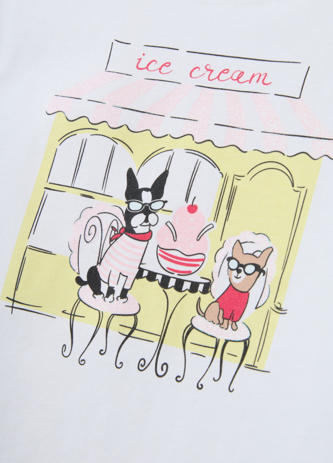 Tip Produs: Tricou alb pentru fete din bumbac pur, croială regular fit, cu imprimeu