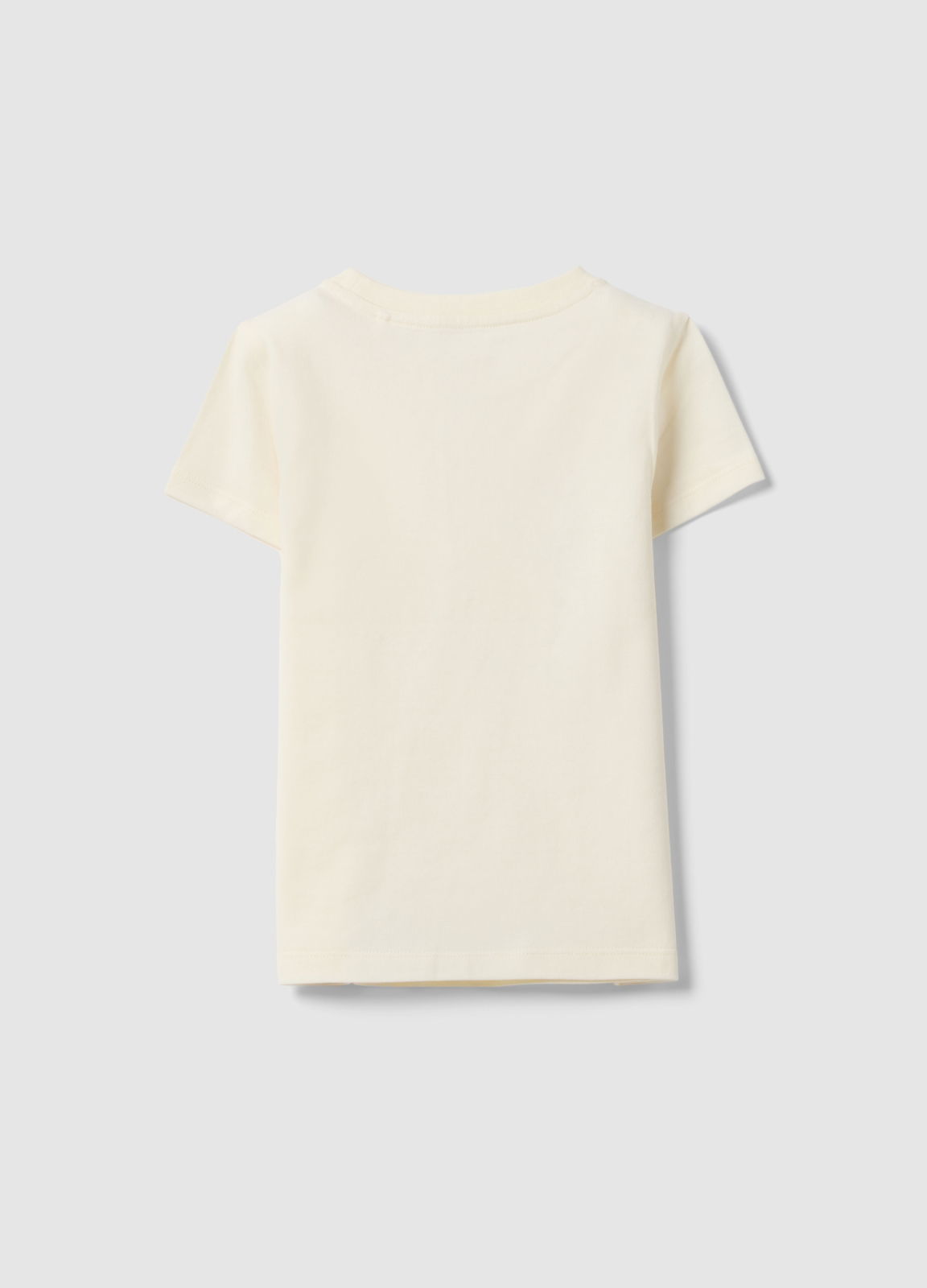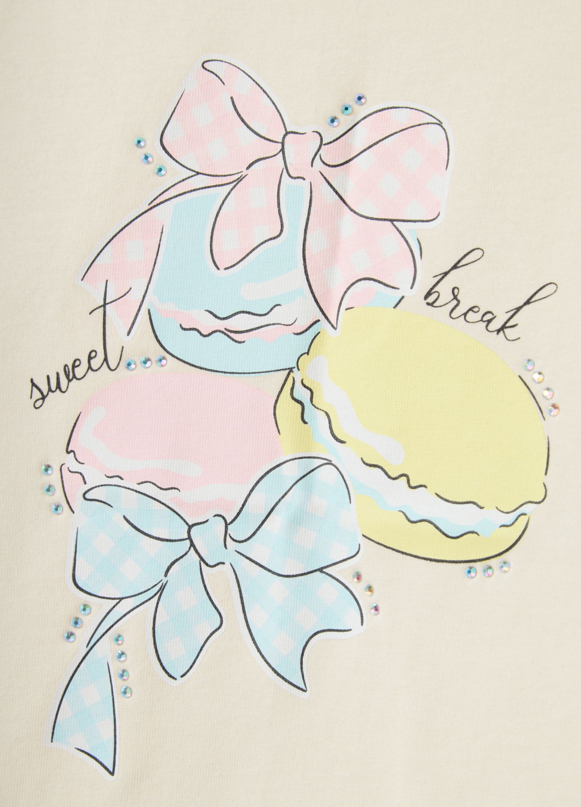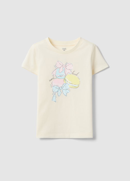 Tip Produs: Tricou bej pentru fete din bumbac pur, croială regular fit, cu imprimeu