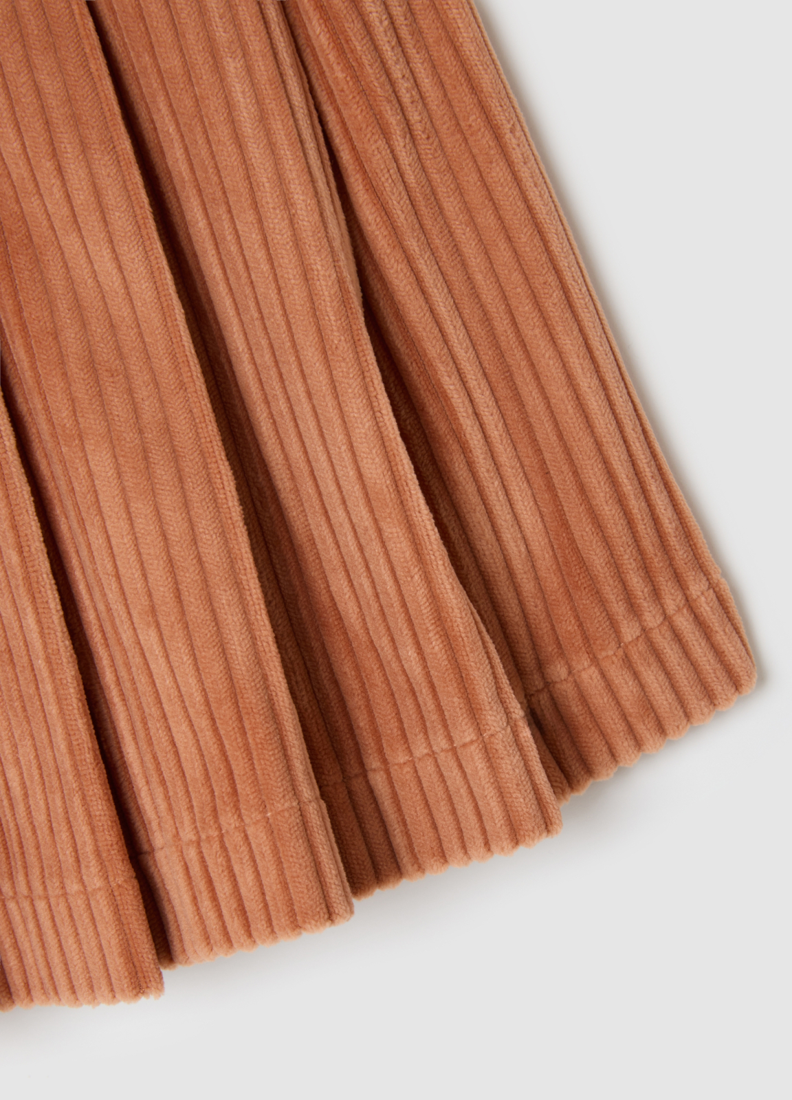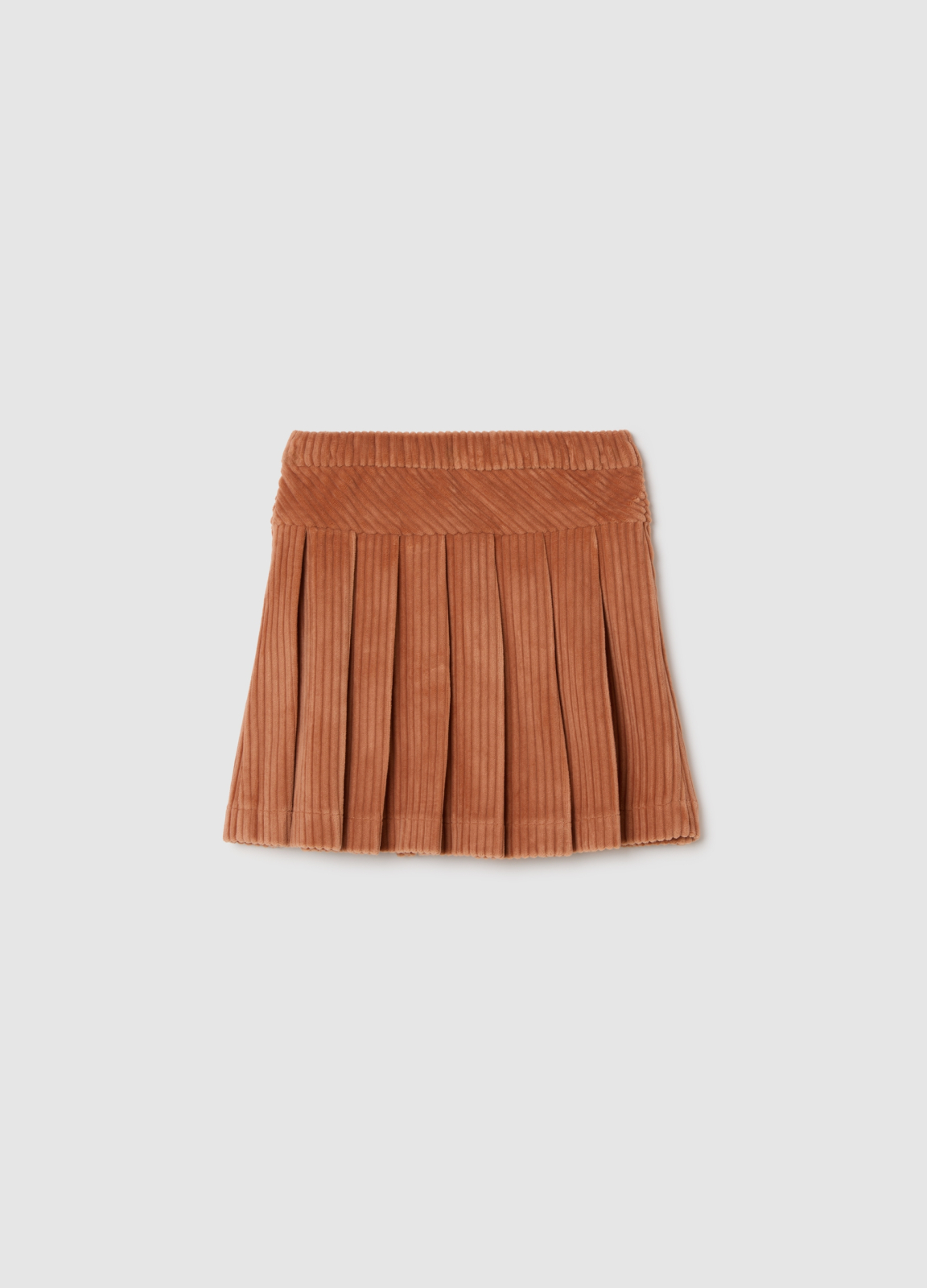 Caracteristici: Fustă elegantă maro din catifea reiată pentru fete, perfectă pentru sezonul toamnă/iarnă. Concepută cu talie elastică pentru o potrivire confortabilă și sigură. Designul plisat adaugă o notă de stil clasic, ideală pentru ocazii speciale. Potrivită pentru fete între 3 și 10 ani, se asortează ușor cu pulovere sau cămăși din aceeași colecție.